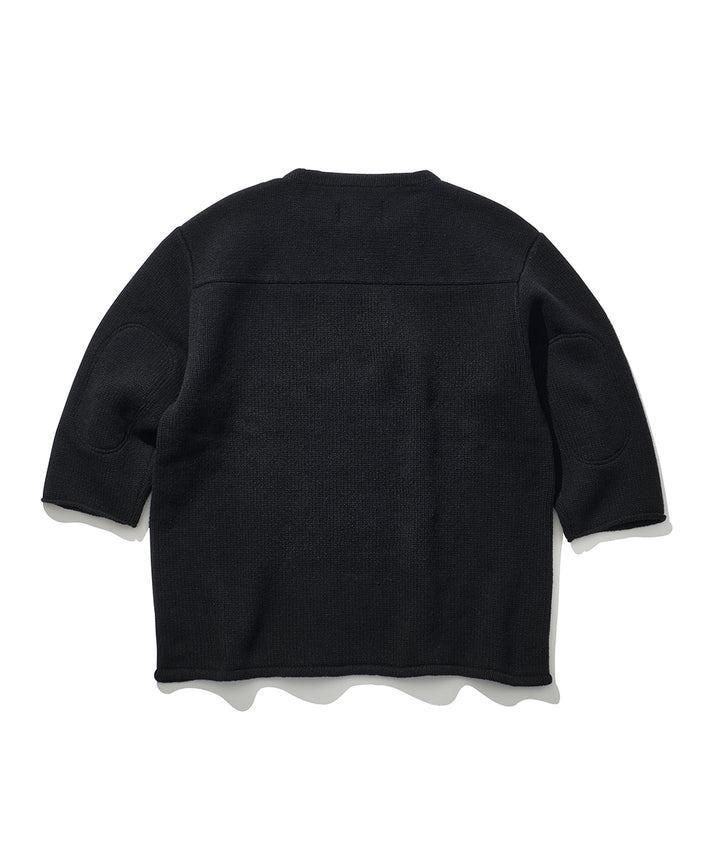 フットボールシャツ型のしっかりとした肉感のラムズウールセーター。着こなしの幅を広げる7部丈。袖裏には、ダブルヒール仕様でアスレチック感溢れる作り。レトロアスレチックウエアを彷彿させるブランドタグも相性抜群です。