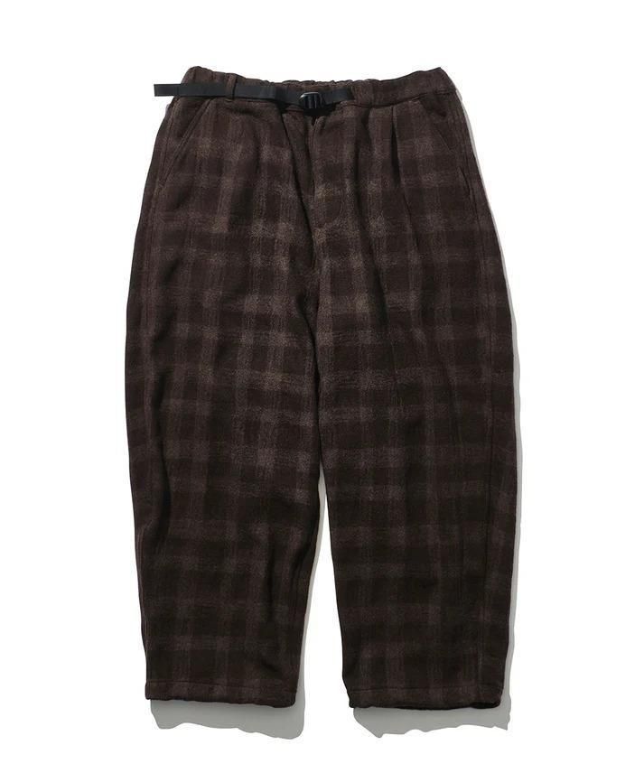 クライミングパンツの源流とも言われるDoogie(=道着)の名を持つ新型クライミングパンツ。フォルムは、9部丈のバギーシルエット。生地は、秋冬らしい落ち着いた色めのプレイド縮絨ウール。