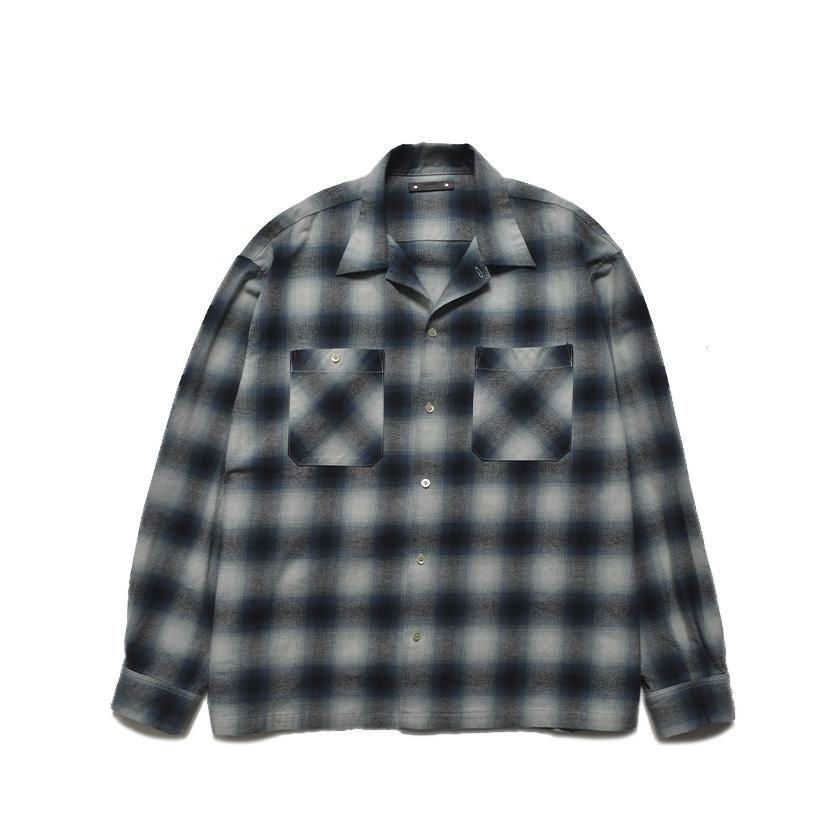 ・ややルーズなボックスシルエットのダブルパッチポケットオープンカラーシャツ