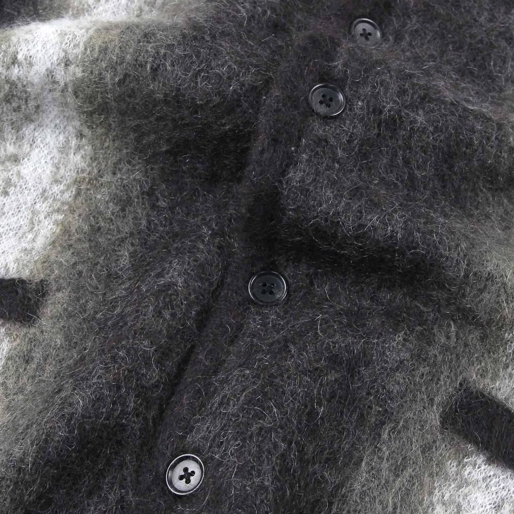 キッドモヘアとウールの混紡糸を用い、ヴィンテージのシャツからインスピレーションを受けた大胆なストライプ柄をジャガード編みで表現。