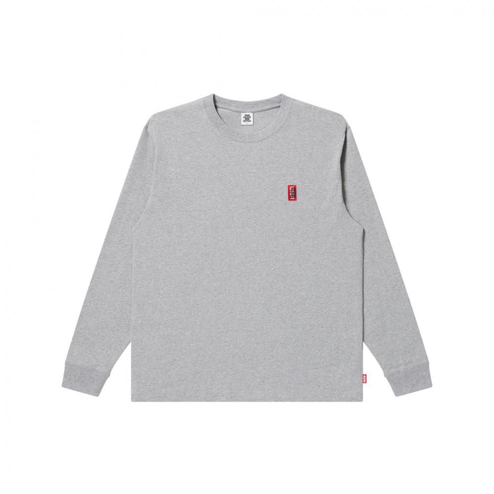 左胸に "取扱注意" LABEL ロゴグラフィックのスモールワッペンを配置したロングスリーブ T シャツ。