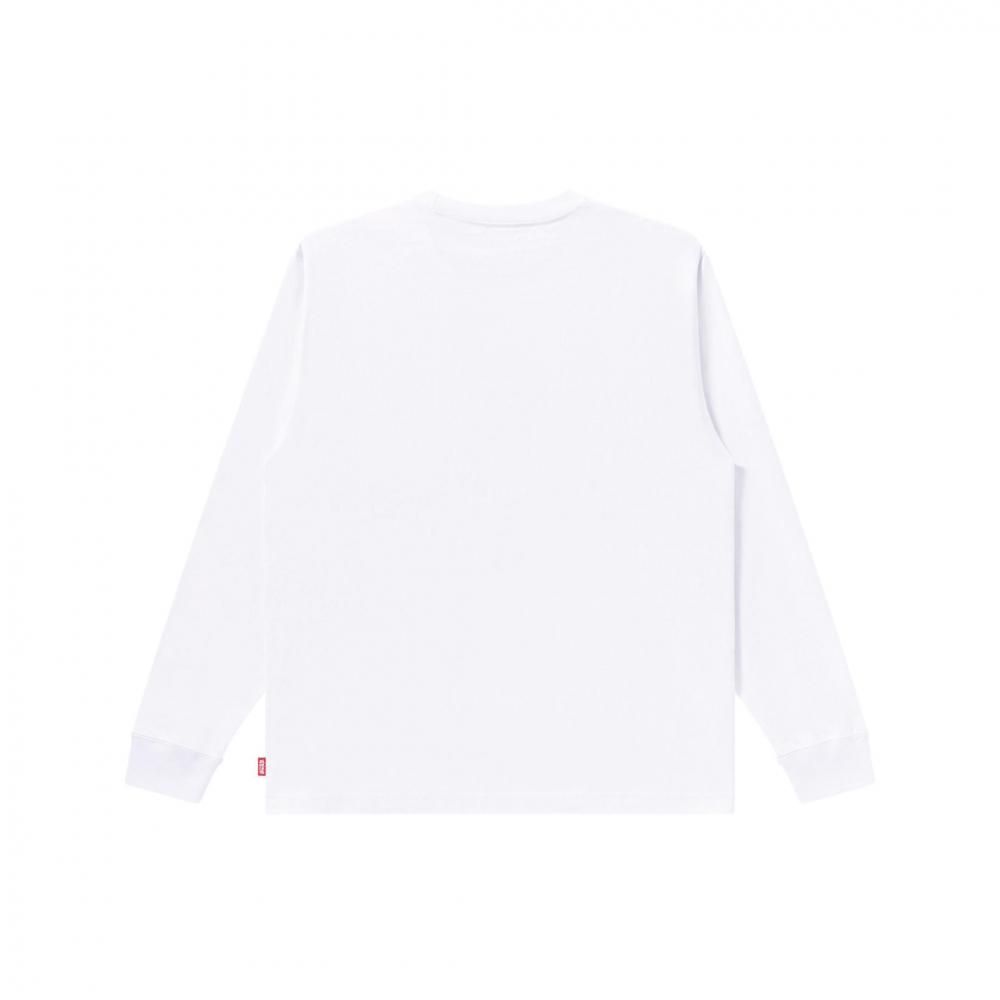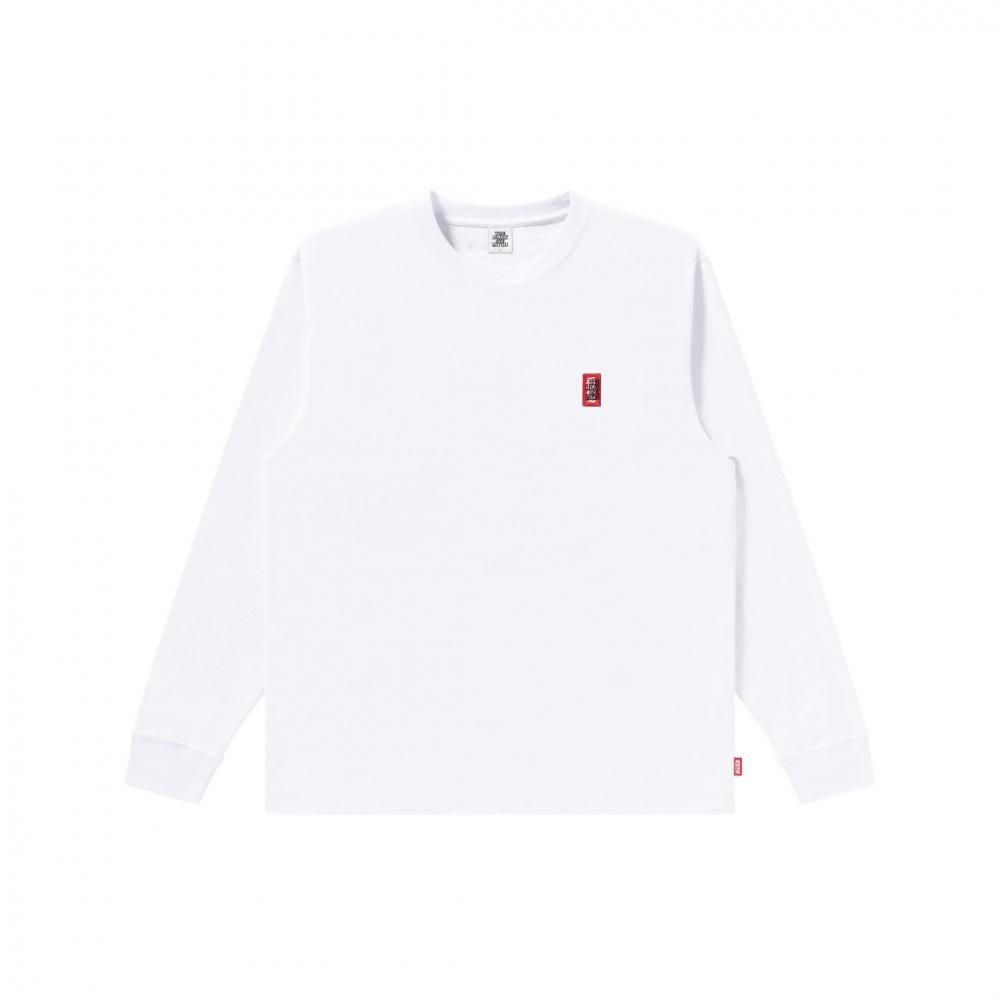 左胸に "取扱注意" LABEL ロゴグラフィックのスモールワッペンを配置したロングスリーブ T シャツ。