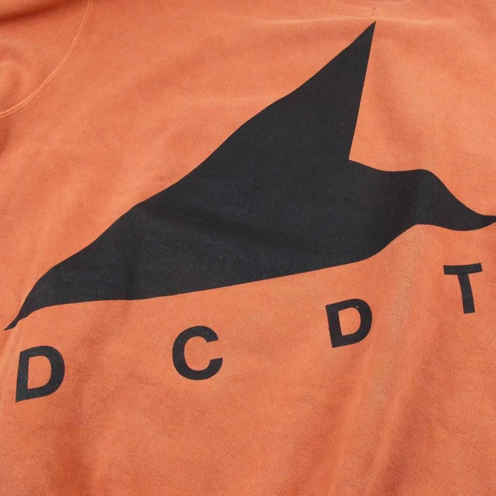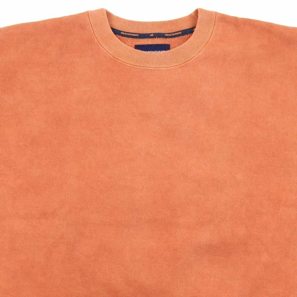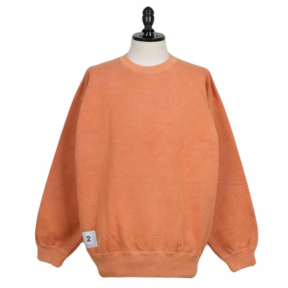 厚手のコットン裏毛を使用し、背面に斜めのCETUSのグラフィックをプリント、ピグメントダイ加工によるクルーネックスウェットシャツ。ゆったりした身幅と裾回りを絞ったシルエット。襟ぐりの継ぎ目にはオリジナルテープのパイピング。右前裾にサイズを表示したCETUSの織りネーム付き。