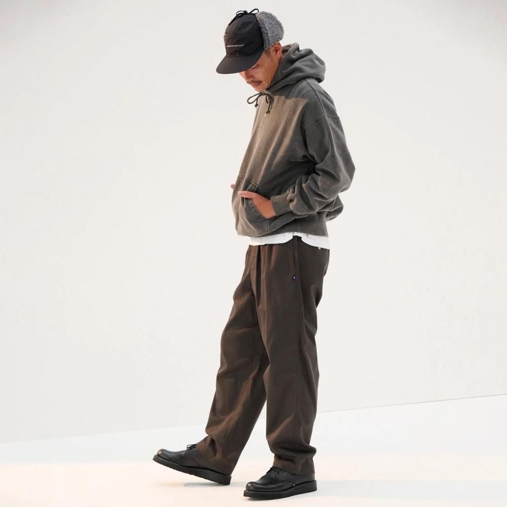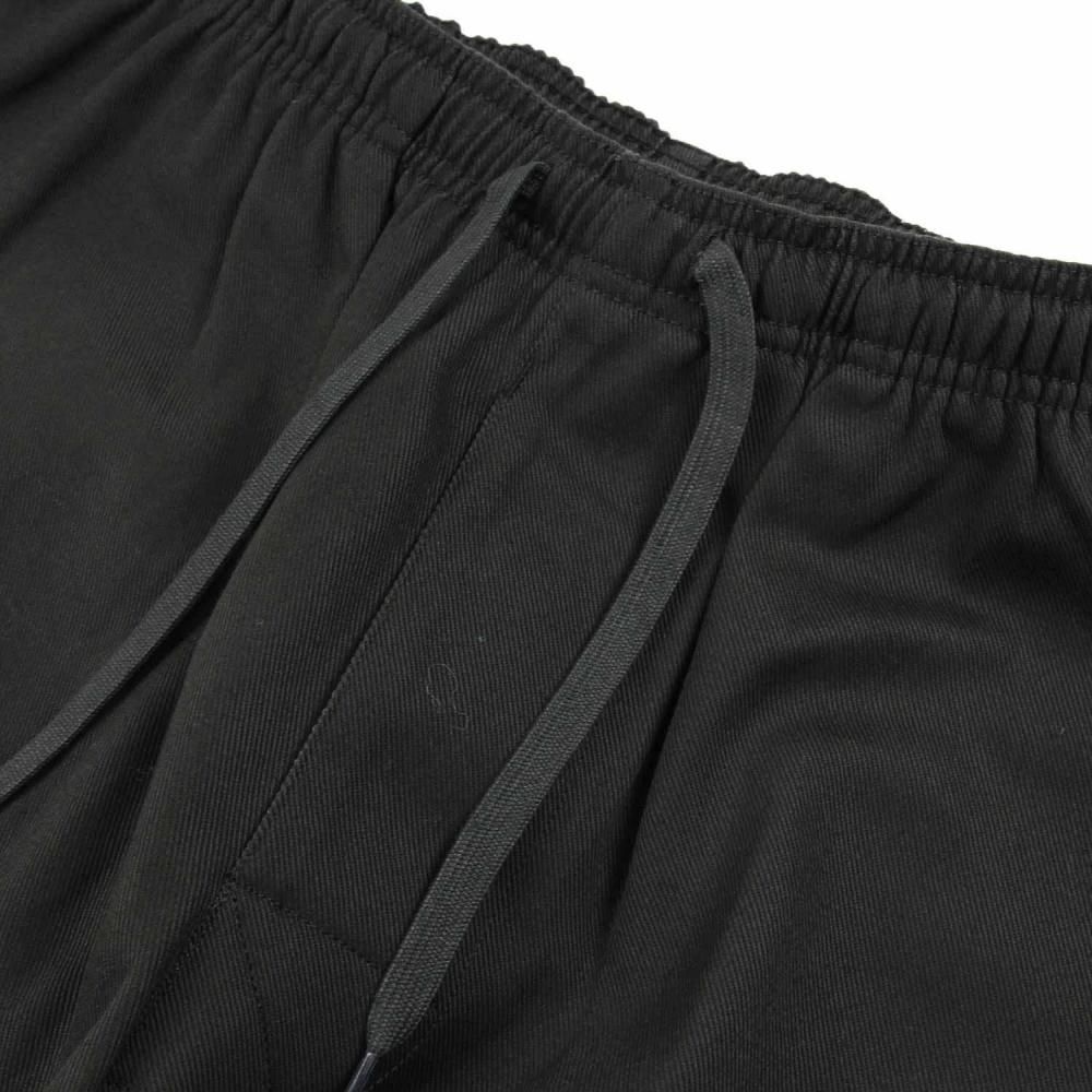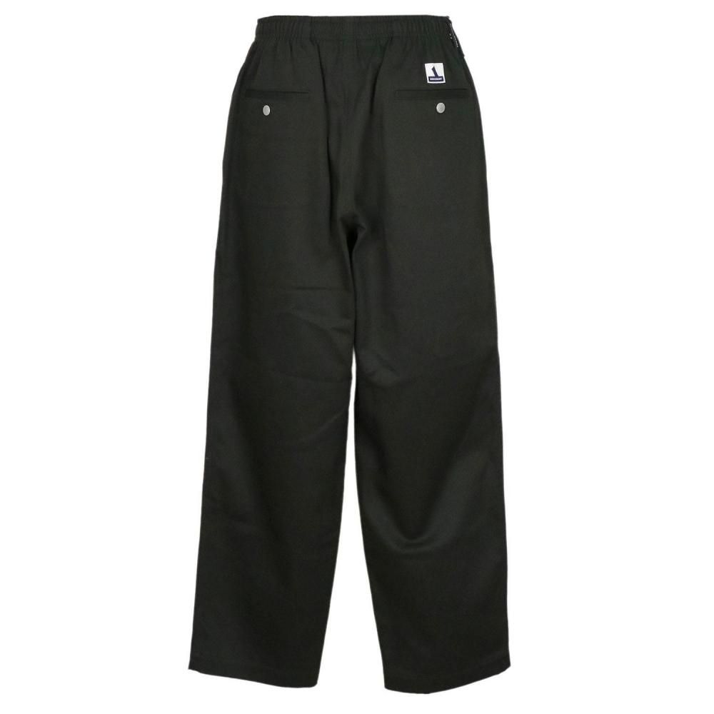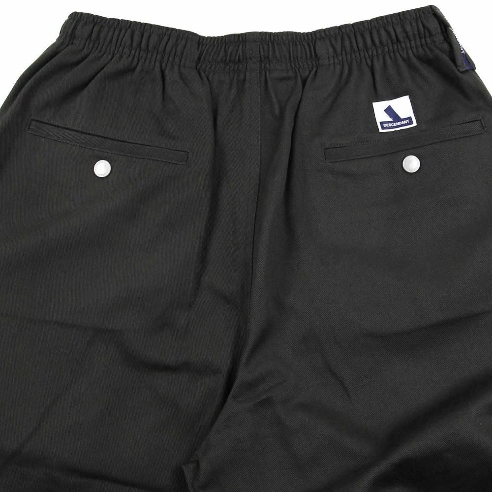 コットンカツラギを使用したSHOREツイルビーチトラウザーズ。ゴム入りのウエストにスピンドルを通し、DESCENDANTのロゴ入りベルトループ付き。サイドポケット及びスナップボタン留めのヒップポケットを配し、SPYHOPの織りネーム付き。