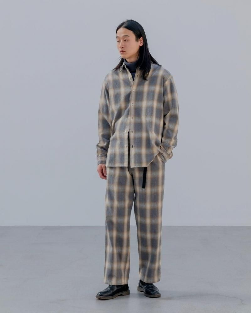 今やUEを代表する定番アイテムと言える、古びたような風合いを表現した“FADE”シリーズのチェックシャツ。シャギー起毛を施したGRAY、そこにメランジ風味を加えたLIGHT GRAYとSAGE、コットン×ポリエステルの混紡糸を採用したLIGHT BROWN、そしてヘリンボーン生地を用いたREDと、多彩なファブリックとカラーごとに異なる柄使いにより豊富なバリエーションを実現。