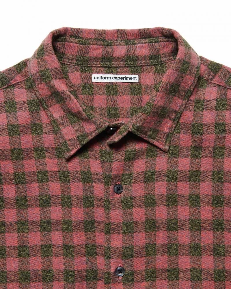 今やUEを代表する定番アイテムと言える、古びたような風合いを表現した“FADE”シリーズのチェックシャツ。シャギー起毛を施したGRAY、そこにメランジ風味を加えたLIGHT GRAYとSAGE、コットン×ポリエステルの混紡糸を採用したLIGHT BROWN、そしてヘリンボーン生地を用いたREDと、多彩なファブリックとカラーごとに異なる柄使いにより豊富なバリエーションを実現。