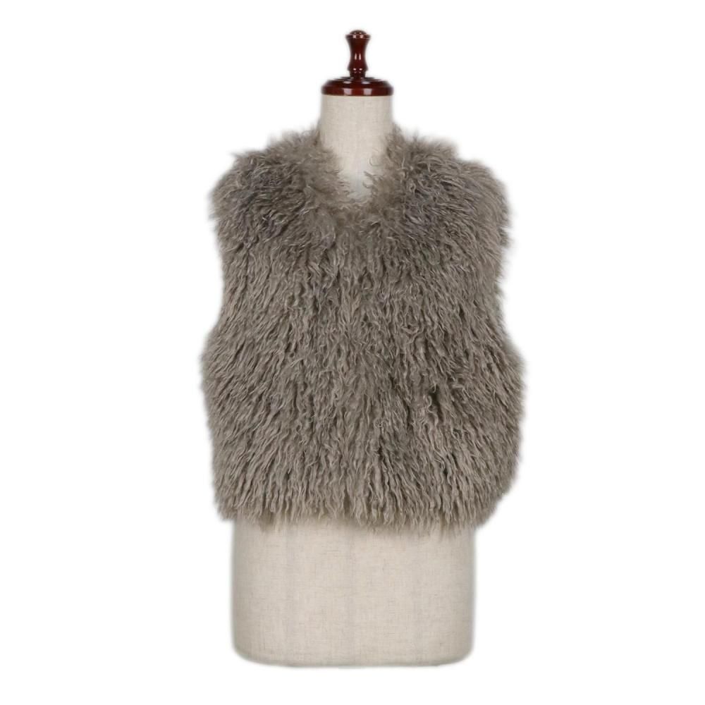 着用感を感じないほどのライトさで人気の素材、WAVY FUR(ウェイビーファー)を使用したショートベスト。ニットのように柔らかく、カーディガン感覚で着用できます。秋の早い時期には薄手のカットソーでも、本格冬にはニットと合わせて、ロングスパンお楽しみいただけます。*生産時期の違いにより、ファーの縮れ、色味が若干異なる場合がございます。