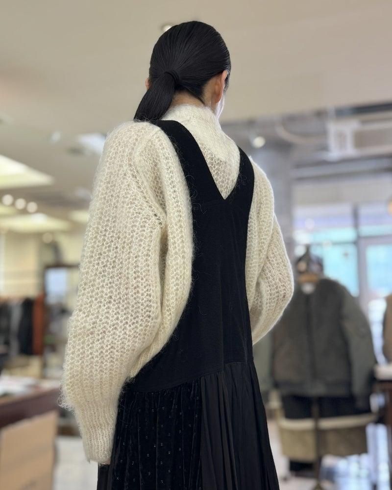 短めの丈感がボリュームスカートやワイドパンツに◎。