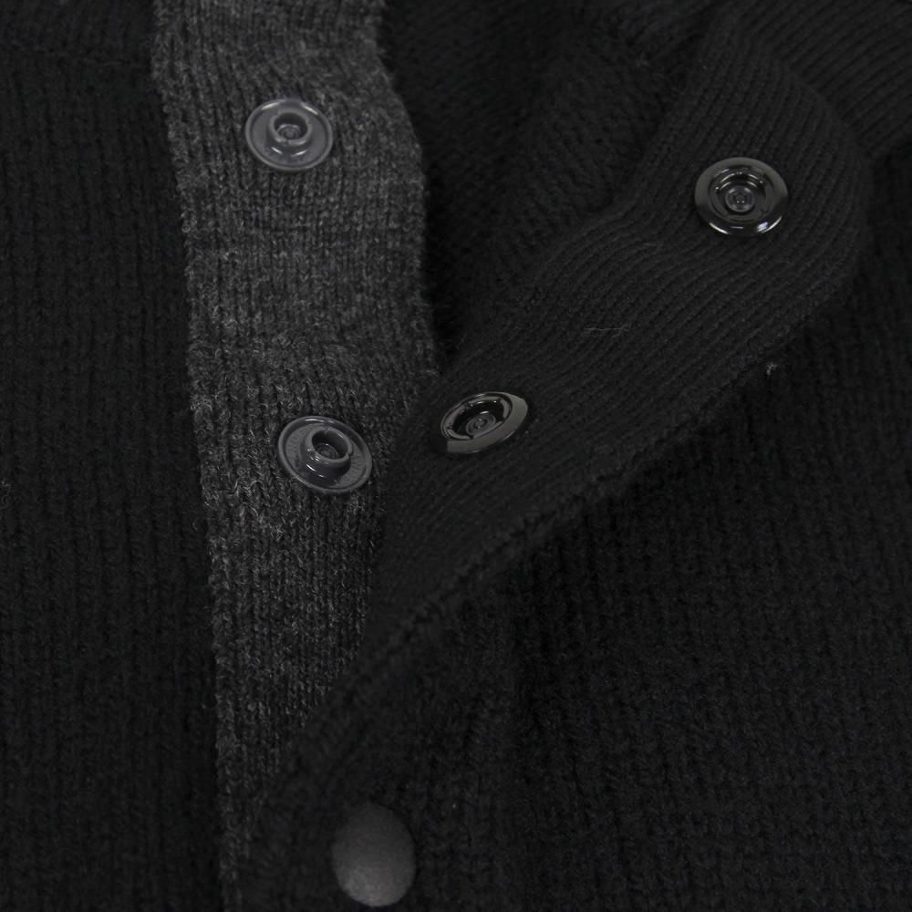 プルオーバーのボディー部分は3本撚りで編んでいますが、パイピングや前立て部分などは厚くならないよう2本撚りの糸で編み機のゲージも変え編立てています。
