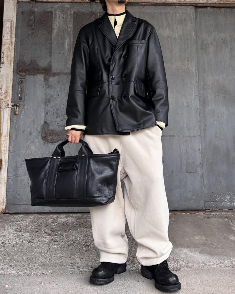 イギリス製シープレザーを使用しました。 レザーの表面にはナッパラン加工を施しています。この特殊な加工により、マットな質感が生まれ、モダンで都会的な雰囲気を演出します。ナッパラン加工は、レザーの光沢感を抑え、素材本来の風合いを引き立てる効果もあります。