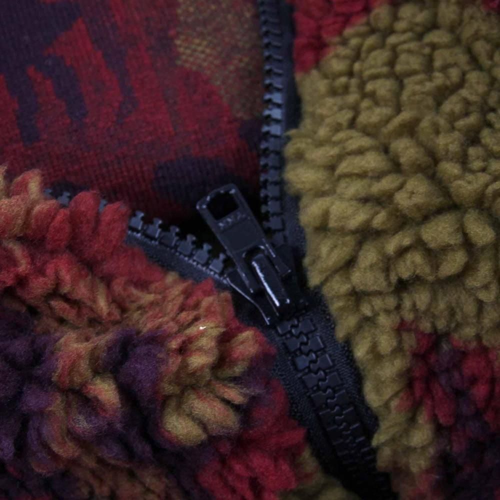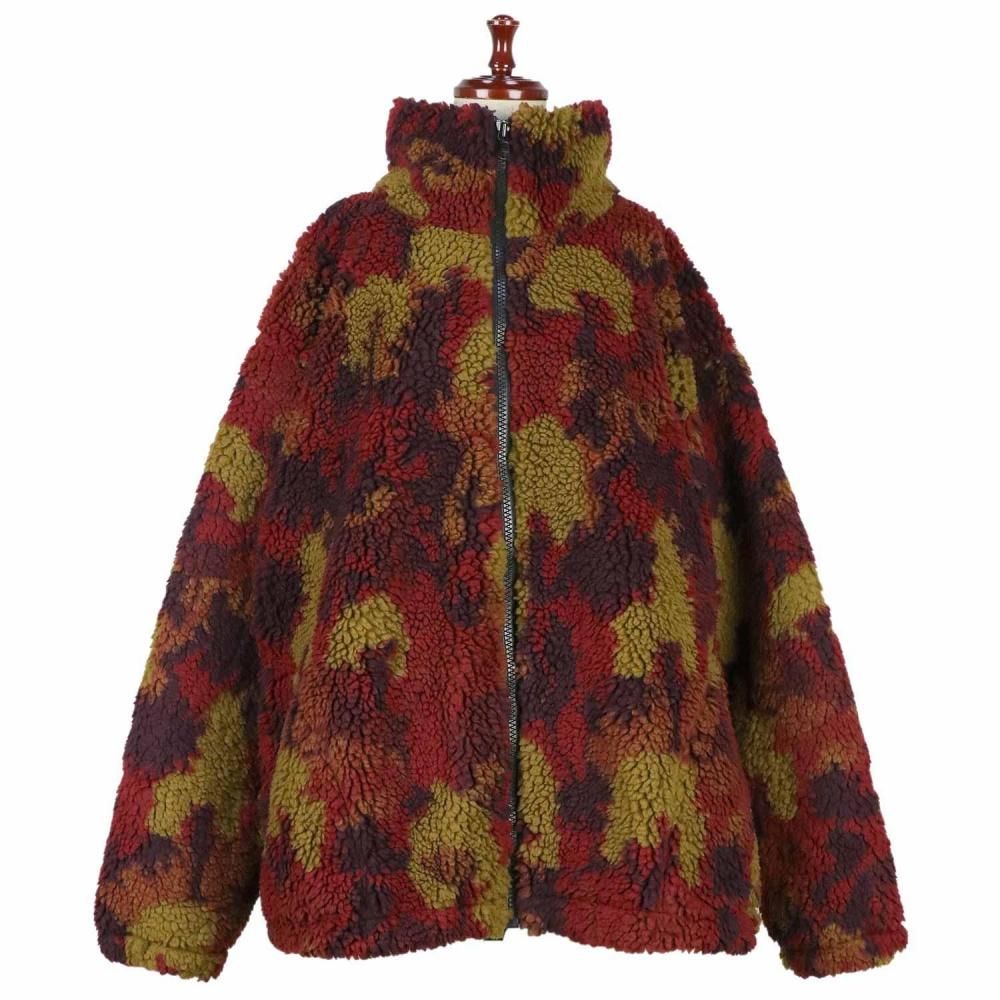 紅葉を思わせるような美しい柄と色合いが目を惹くボアブルゾン。