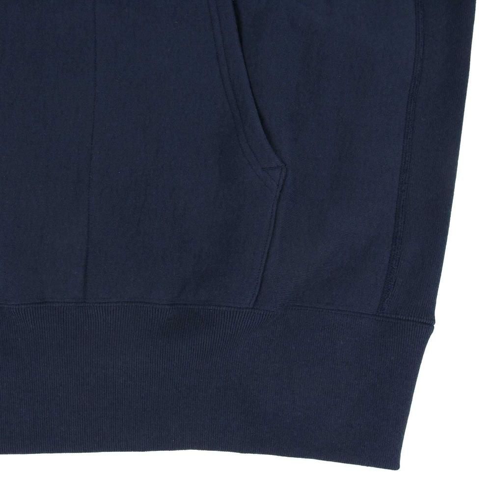 1952年に2度目の製法特許を取得した「REVERSE WEAVE®(リバースウィーブ®)」の復刻商品で、首周りのリブ部分にフードを挟み込んだ、通称「後付けパーカ」と言われるプルオーバーアフターフーデッドスウェットシャツです。両端を縫い込んだ通称「タタキタグ」やフード内側の縫い付け位置も当時のディテールを踏襲。「REVERSE WEAVE®」と「EXPANSION GUSSET(エクスパンションガゼット)」のパテントナンバーを表記した襟ネームも忠実に再現しています。プリントには実在のヴィンテージ商品のデザインを採用。さらに、左袖にCロゴワッペンが付いていない点も当時の仕様そのままです。