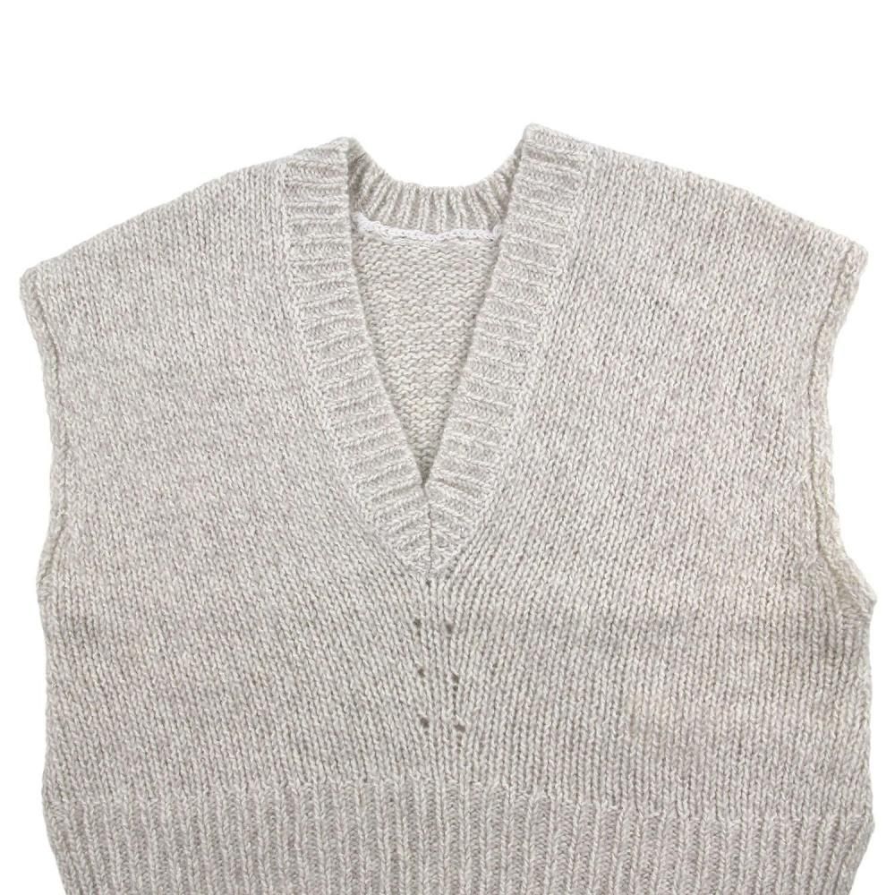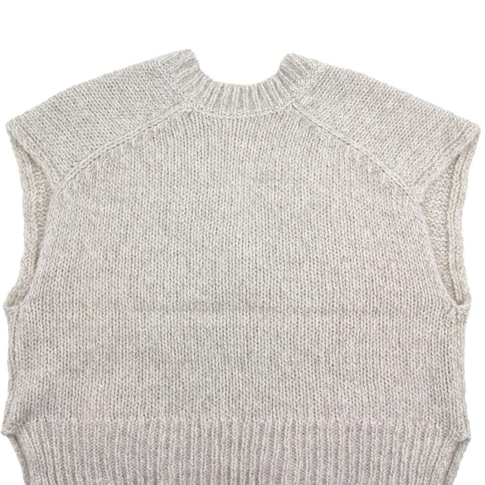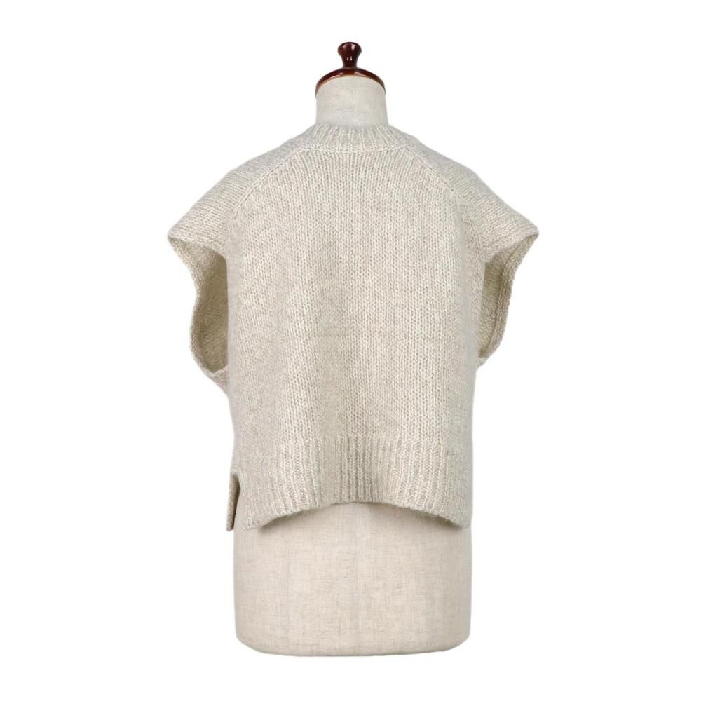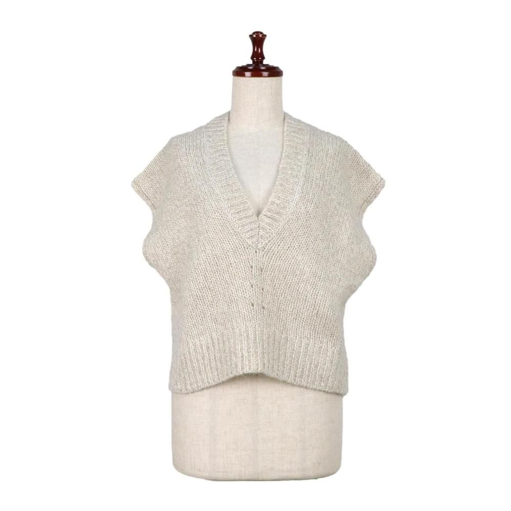 スッキリした深めのVネックと女性らしいクルーネックの前後2WAYで着用できるニットベスト。短めの着丈がトレンド感をプラスしてくれ、ボリュームのあるボトムスとも好相性です。シャツやブラウスなど、お好みのアイテムとの重ね着を楽しんで頂けます。