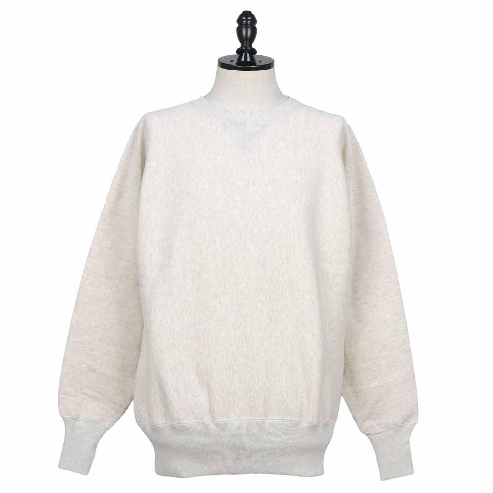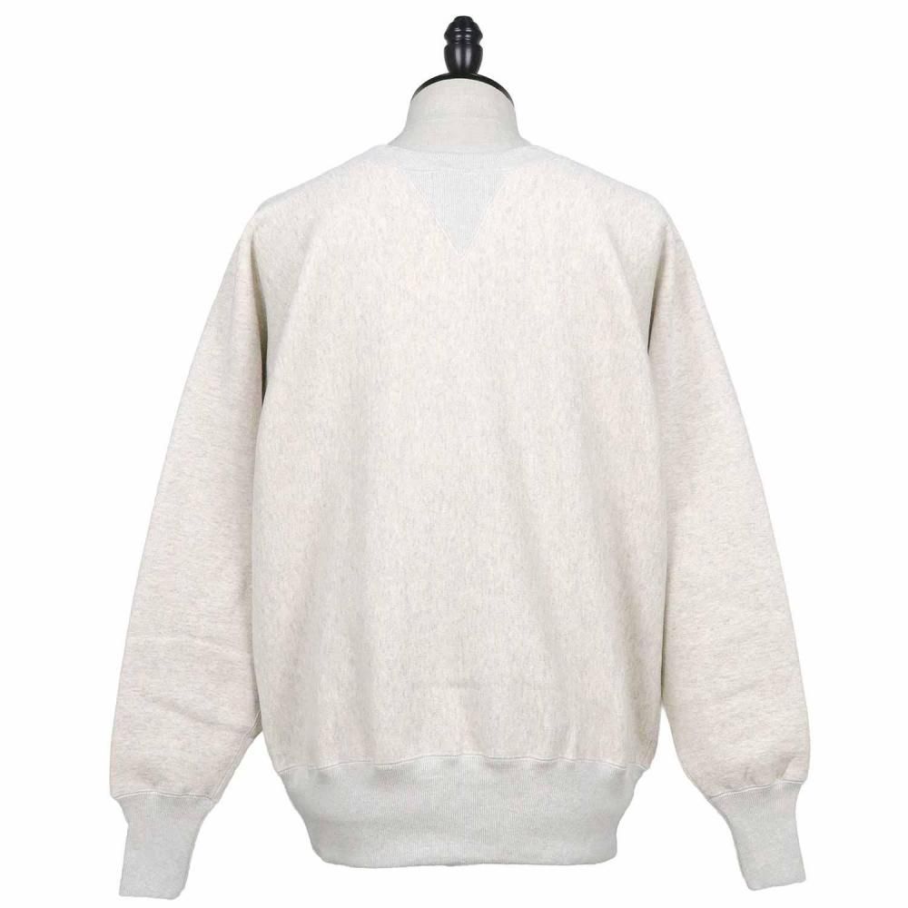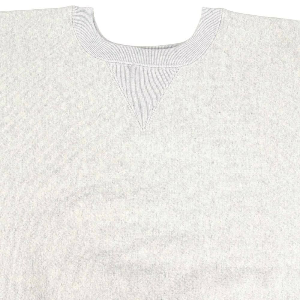 1934年に開発、1938年に製法特許を取得した最初期の「REVERSE WEAVE®(リバースウィーブ®)」を復刻した、1stパテントモデル クルーネックスウェットシャツです。「REVERSE WEAVE®」製法は、アメリカの老舗紳士服店ヒッキーフリーマンでカッターとして働いていた経験を持つ営業マンのサム・フリードランドが顧客から「洗濯による縮み」を指摘され、それを解決するため試行錯誤の末に考案した製法です。本来は縦方向に使われる生地を横方向に使用し、縮みを軽減することに成功しました。この復刻商品では、肩に縫い目のない一枚布で作ったシームレスショルダーや、筒状のスウェットからパターンを起こす当時の製法を忠実に再現。「REVERSE WEAVE®」と表記していなかった当時の襟ネームも復刻しています。さらに、左袖にCロゴワッペンが付いていない点も当時の仕様そのままです。