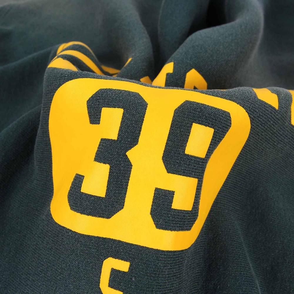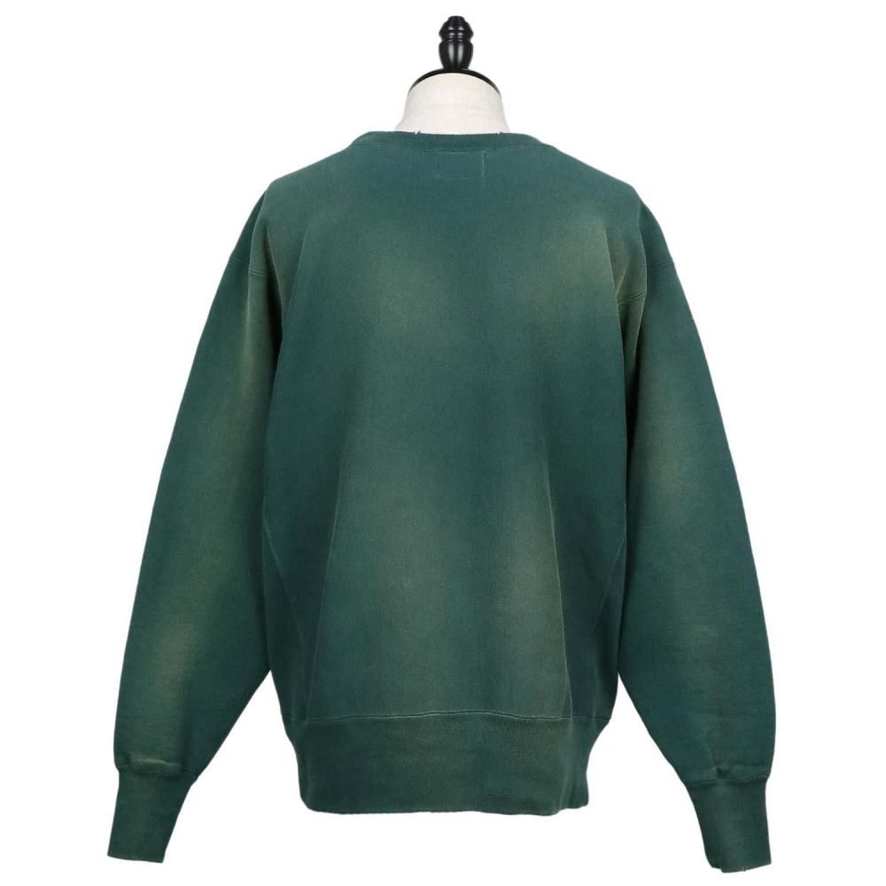 1952年に2度目の製法特許を取得した「REVERSE WEAVE®(リバースウィーブ®)」を復刻した、2ndパテントモデル クルーネックスウェットシャツです。本来は縦方向に使われる生地を横方向に使用して縦の生地の縮みを防ぐと同時に、1938年の1stモデルになかった両脇の「EXPANSION GUSSET(エクスパンションガゼット)」を採用することで横の縮みへの影響も少なくし、動きやすさに配慮。この改良によって2度目の製法特許を取得しました。タグの四方を縫い込んだ通称「タタキタグ」のディテールや、「REVERSE WEAVE®」のパテントナンバーを表記した襟ネームも忠実に再現しています。ヴィンテージ加工によって、経年劣化した色合いや風合いを表現。プリントは実在のヴィンテージ商品のデザインを採用。シルバーグレーのボディには染み込みプリントを、ダークグリーン、マルーンのボディにはプラスチゾルプリントを使用しています。左袖にCロゴワッペンが付いていない点も当時の仕様そのままです。
