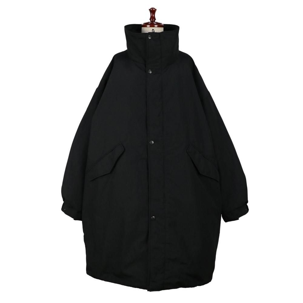 オーガニックコットンとリサイクルナイロンのグログランクロスを使用したダウンコート。