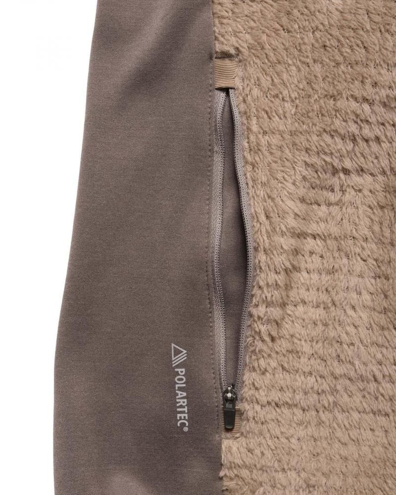 保温性、柔軟性、弾力性などを兼備したフリース生地「ポーラテック®ハイロフト™」に、F.C.R.B.オリジナルのジャージー素材を組み合わせたハイブリッドなジップアップフリース。