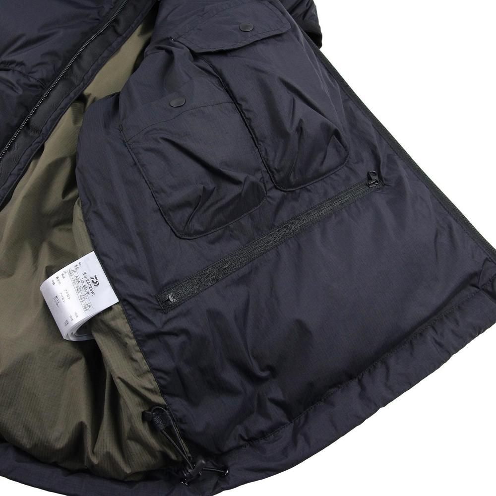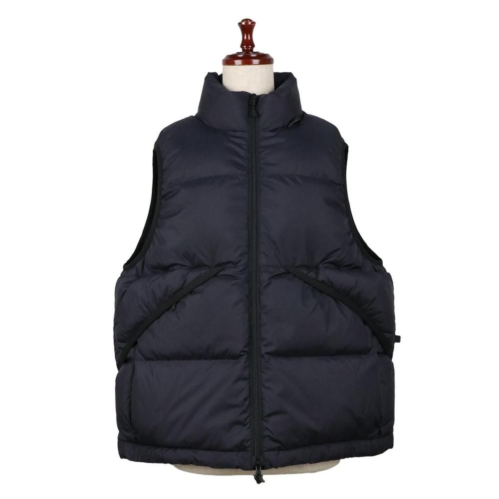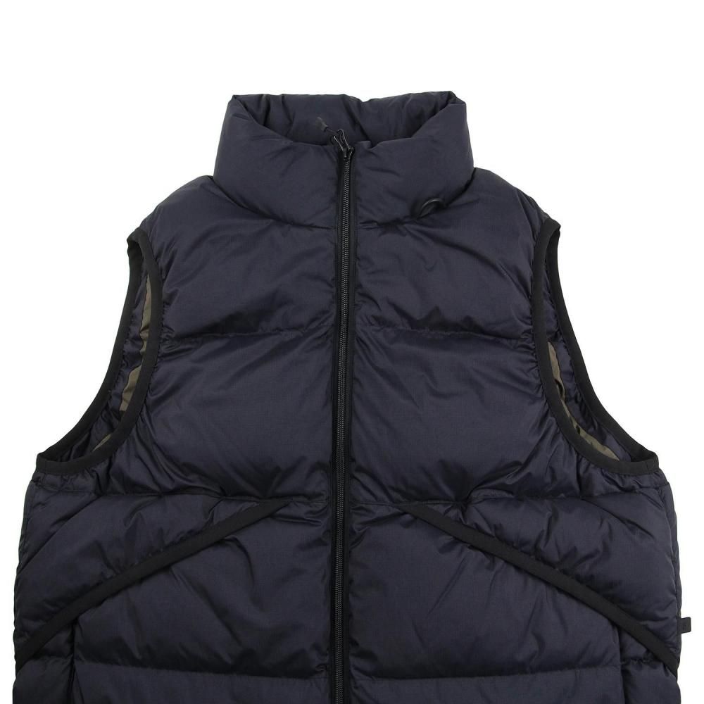 寝袋のような膨らみが特徴のダウンベスト。シンプルに横ステッチで表現されたベーシックなデザインだが、ハンティングジャケットからインスピレーションを受け、フロントからサイドにかけて大きくデザインしたフラップポケットが最大の特徴。中には仕切られた2つのポケットが配されている。また内側に大小様々なポケットワークを施し、タックルケース、ルアーケース、モバイルなどを収納出来るようデザイン。見た目以上に収納力の高いダウンベスト。