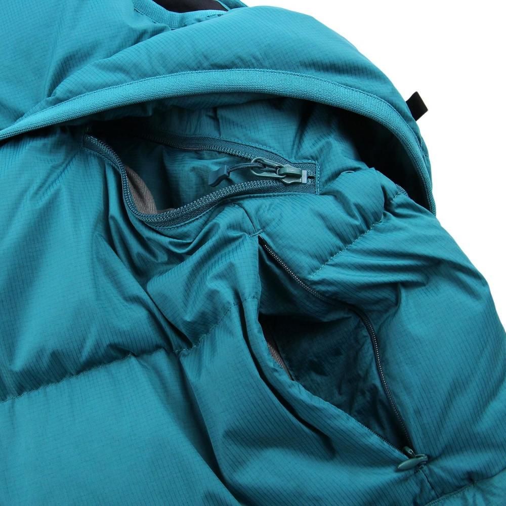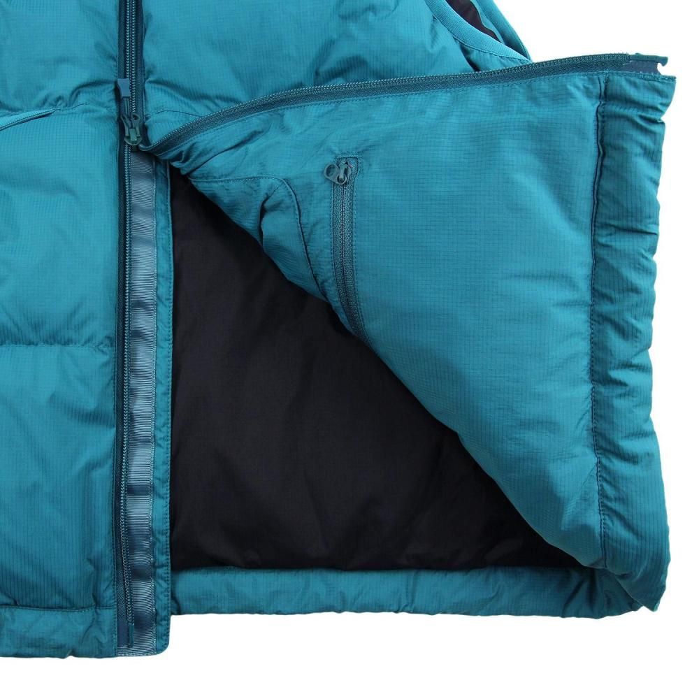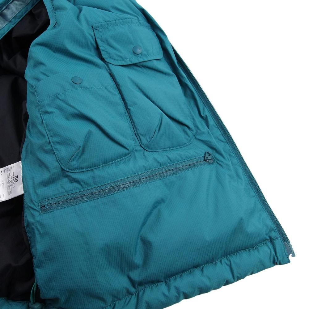 寝袋のような膨らみが特徴のダウンベスト。シンプルに横ステッチで表現されたベーシックなデザインだが、ハンティングジャケットからインスピレーションを受け、フロントからサイドにかけて大きくデザインしたフラップポケットが最大の特徴。中には仕切られた2つのポケットが配されている。また内側に大小様々なポケットワークを施し、タックルケース、ルアーケース、モバイルなどを収納出来るようデザイン。見た目以上に収納力の高いダウンベスト。