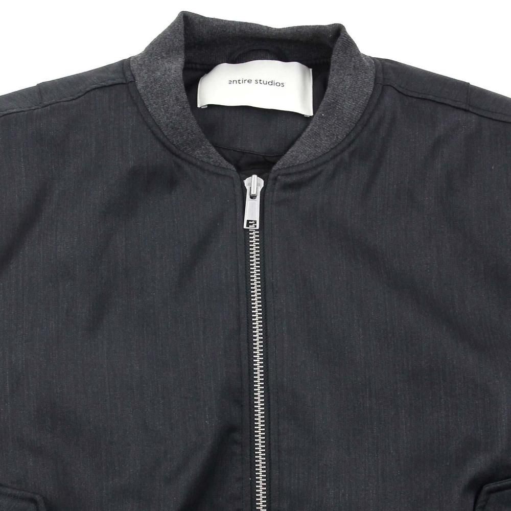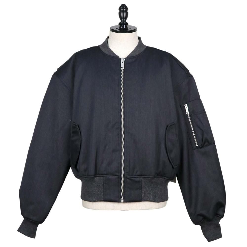 ウールポリエステル混紡の光沢のある素材を使用したCROPPED BROAD BOMBER