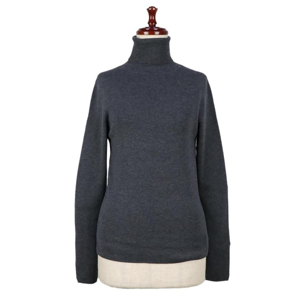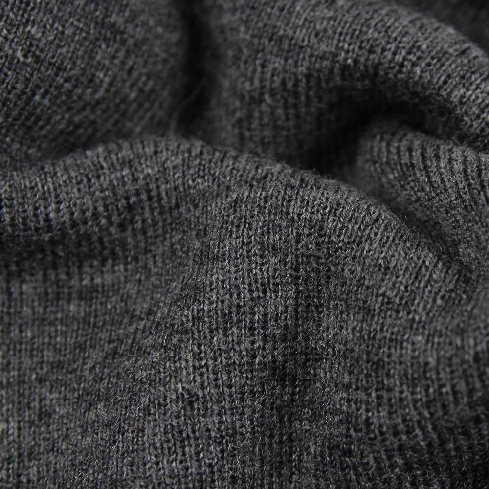 しなやかで非常に肌触りの良いハイゲージのニット。最大の特徴はスーパーファイン・メリノを使用したセミ梳毛糸という点です。