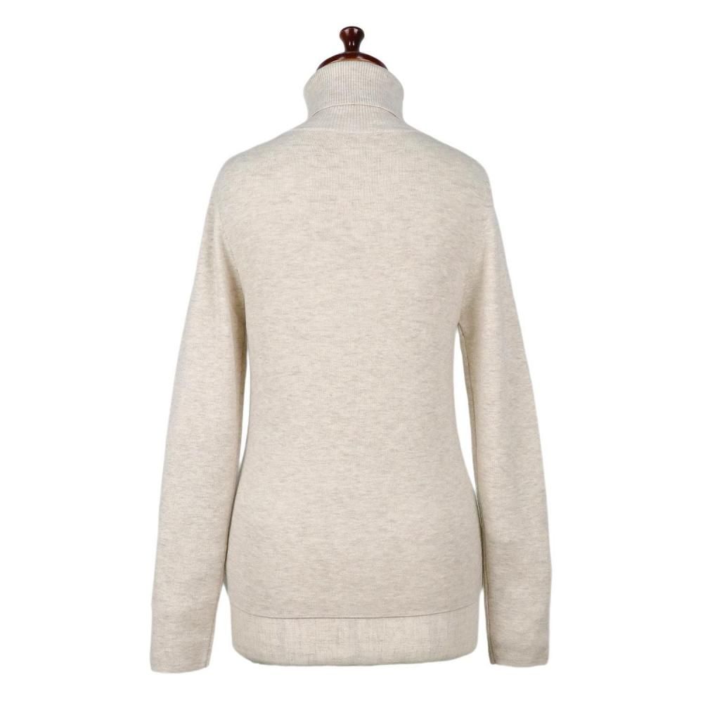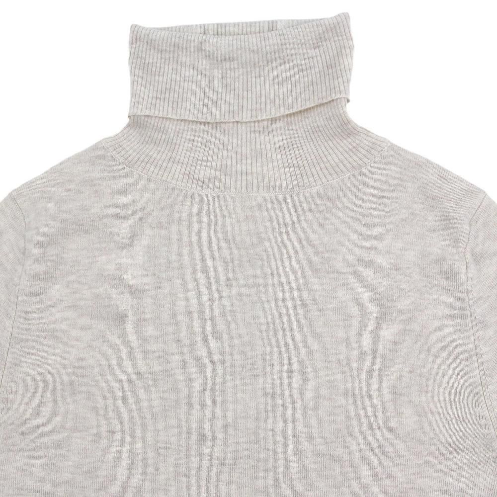 しなやかで非常に肌触りの良いハイゲージのニット。最大の特徴はスーパーファイン・メリノを使用したセミ梳毛糸という点です。