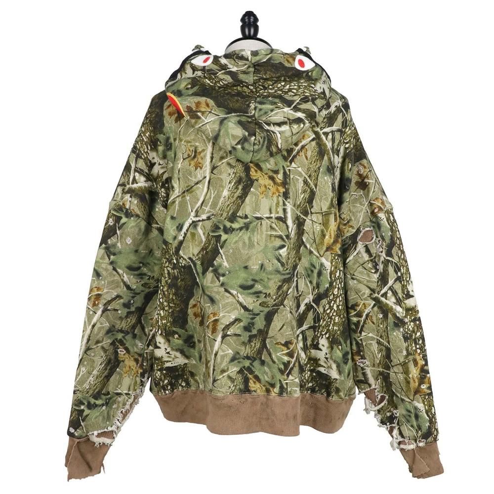 印象的なリアルツリーカモフラージュは、デザイナー細川雄太のフィルターを通じて、新たな表現として落とし込まれています。