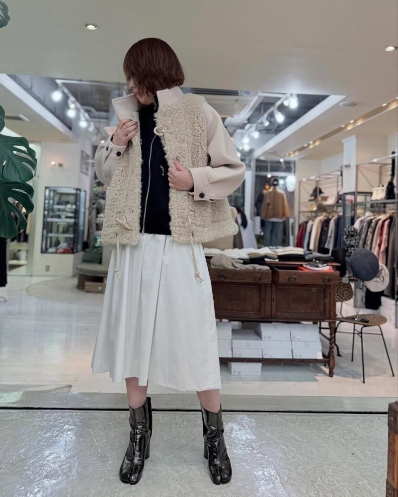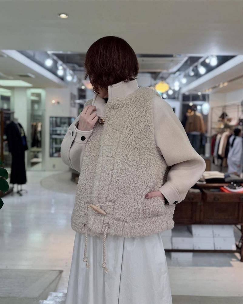 丸みのあるボディとボリュームスリーブシルエット、斜めにデザインされたトグルが特徴です。