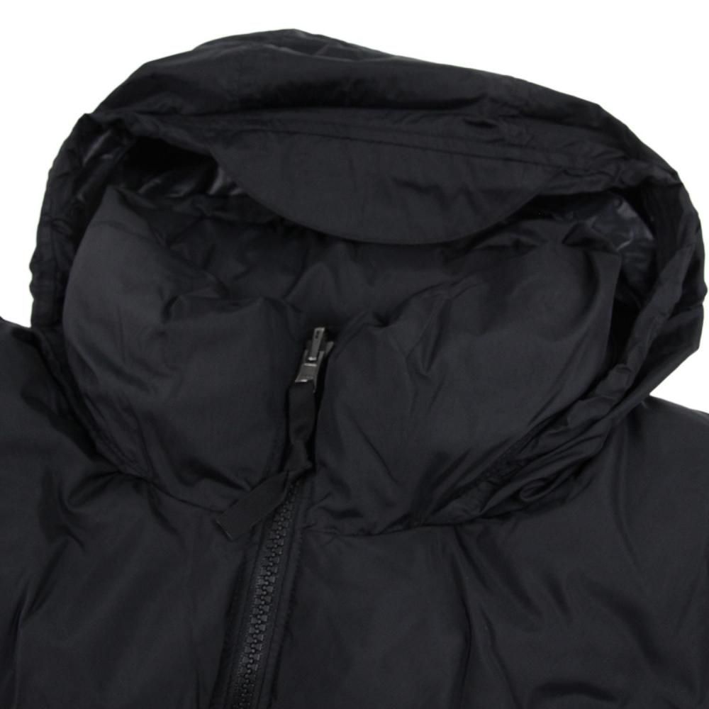 環境に配慮したリサイクルダウンを中わたの一部に使用。表地は強度がある40デニールのリップストップナイロンにはっ水加工を施し、肩切り替え部分は厚手のナイロン素材に切り替えています。