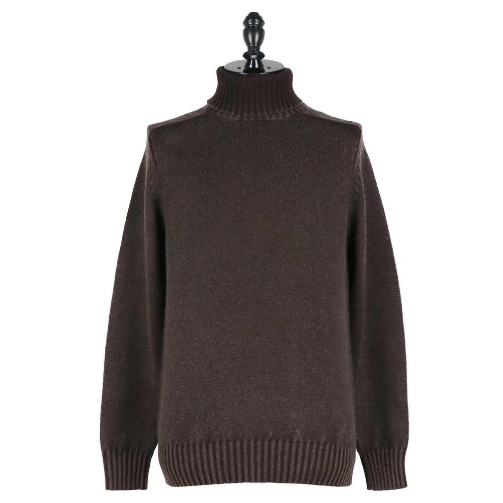 ざっくりとした編みが特徴のタートルネックニット。