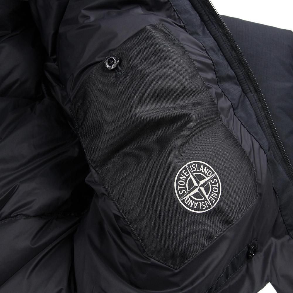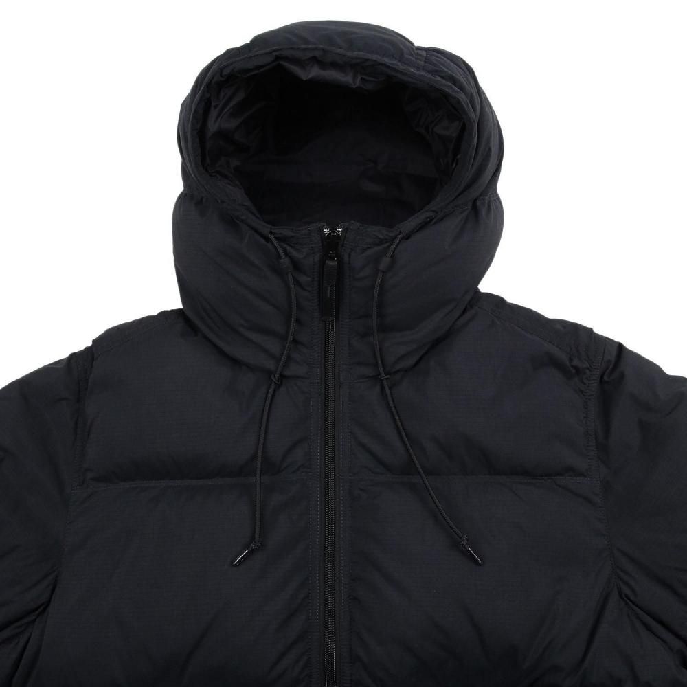 中綿入りのフード、縁にドローストリング。スナップボタンで開閉する縦長のハンドポケット。ボタン留めの内ポケット1つ、Stone Island Compassロゴの刺繍入り。左袖にStone Islandバッジ。カフスに三角形のハンド保護フラップを袖に留めるスナップボタン1つ、スナップボタンで調節可能なストラップ。裾にドローストリング。ダブルスライダーファスナー開閉。