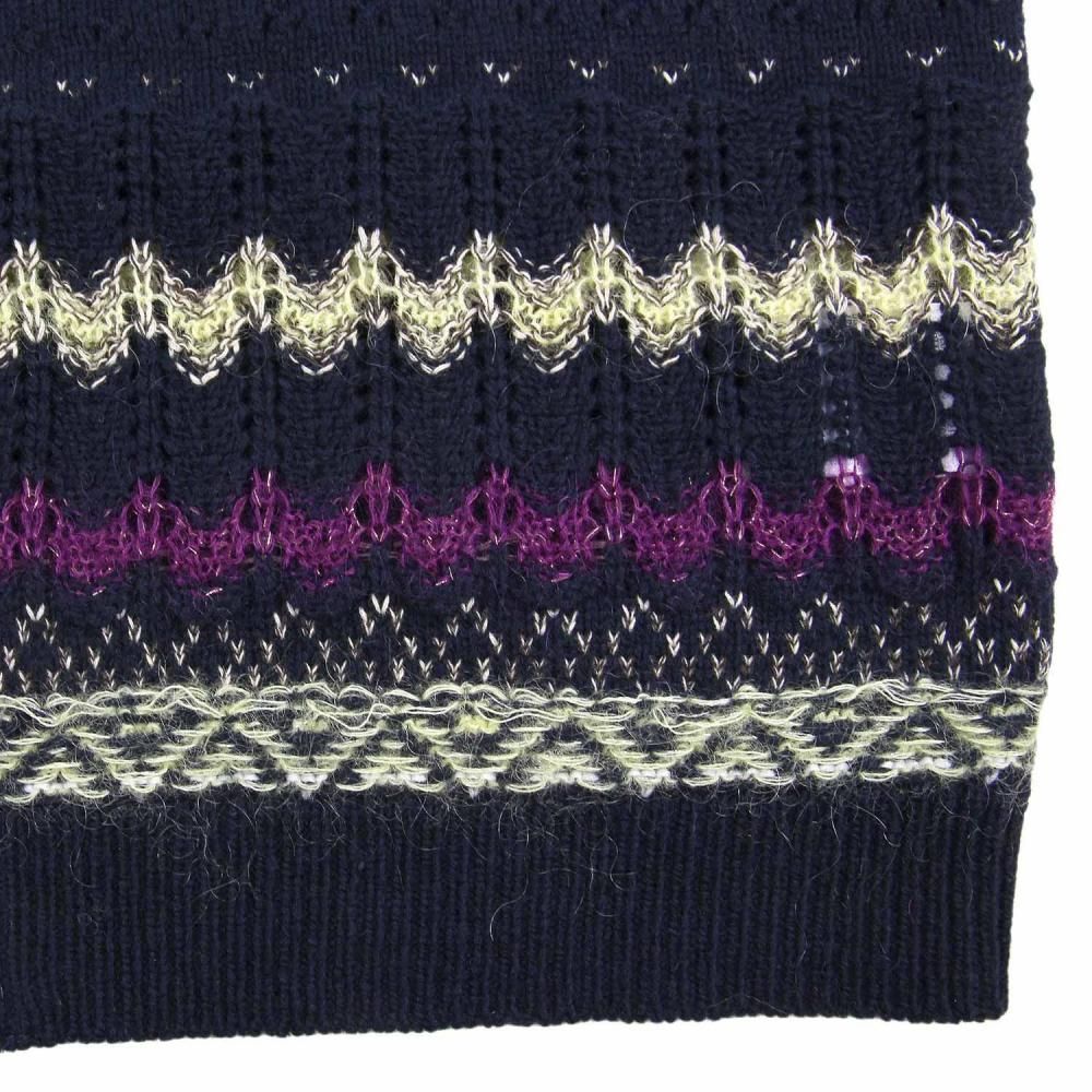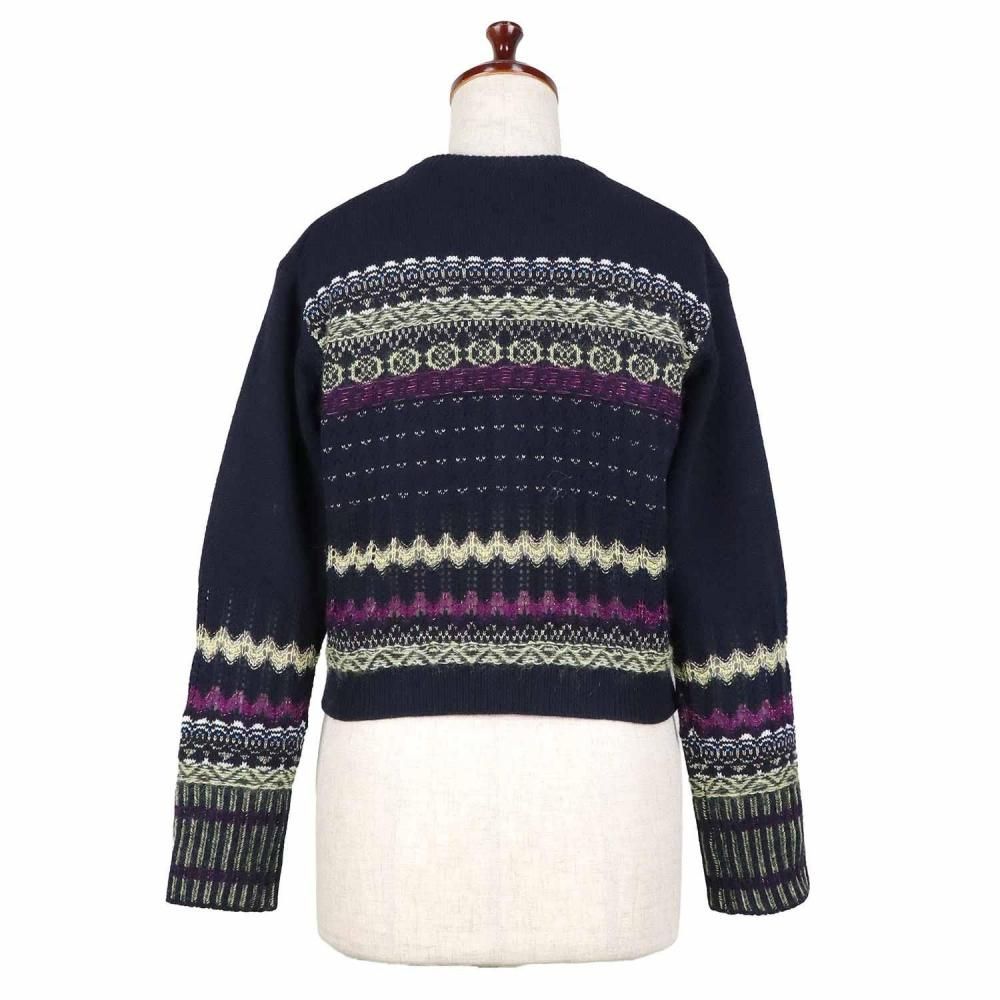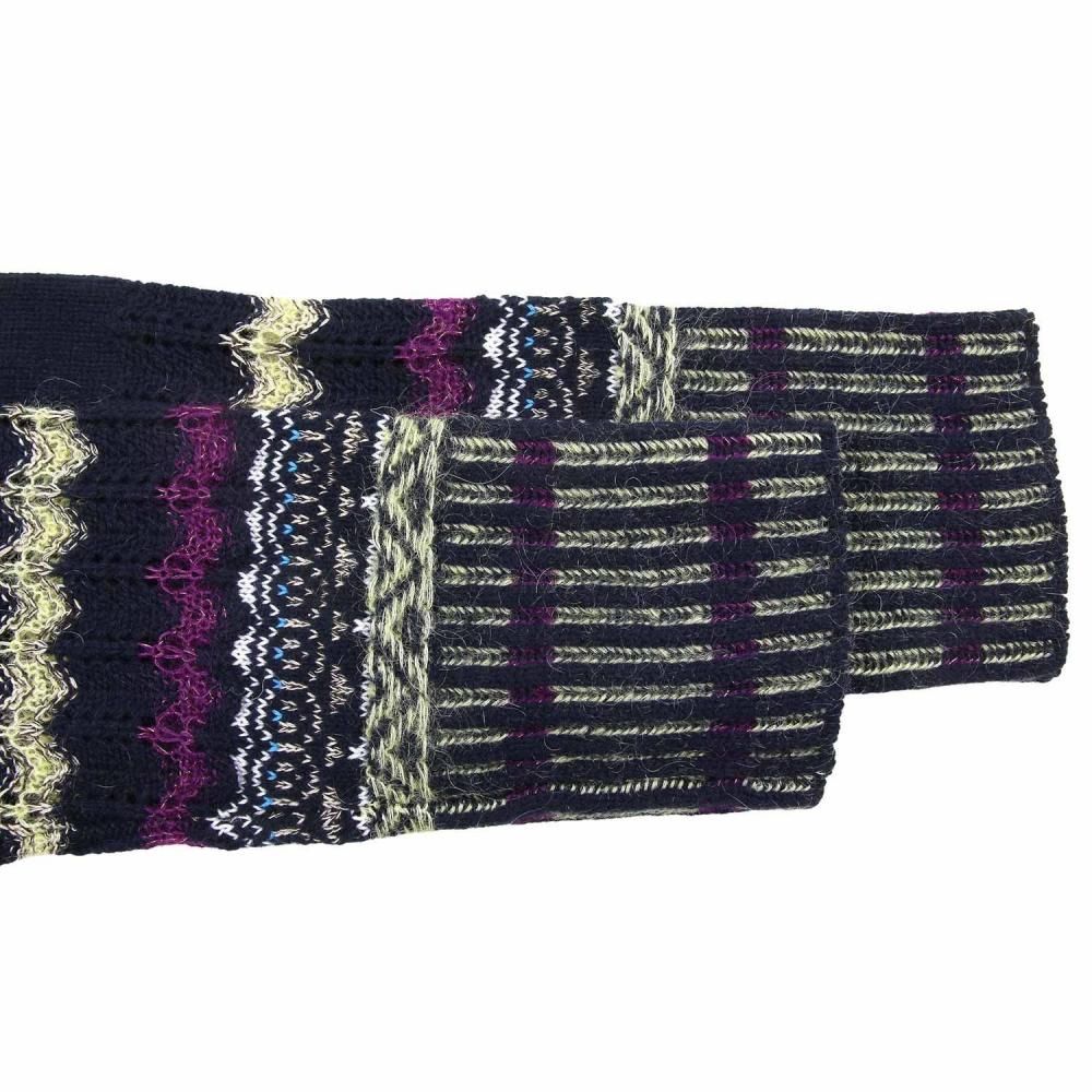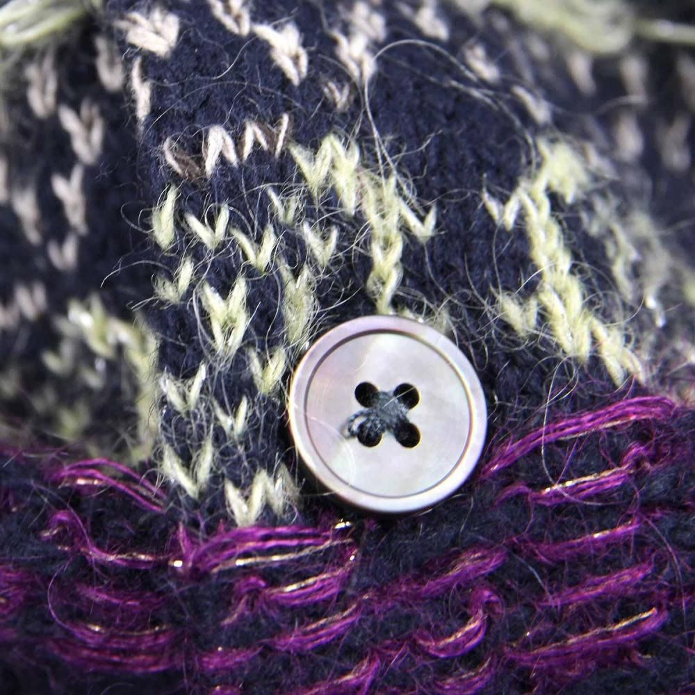 膨らみのあるウールナイロンの糸をベースにモヘヤ糸やラメ糸を柄に使用することで、表情豊かなニットに仕上がっています。