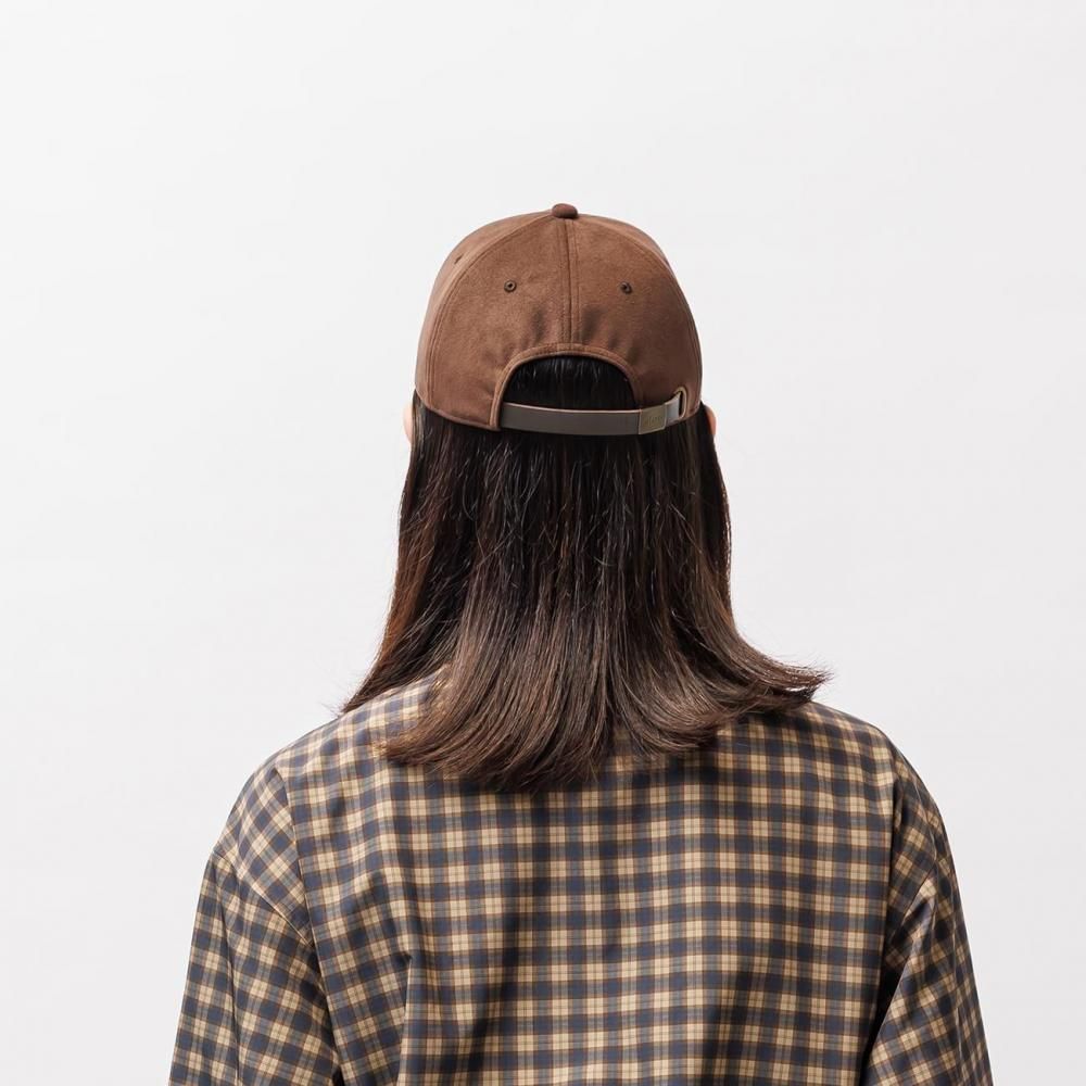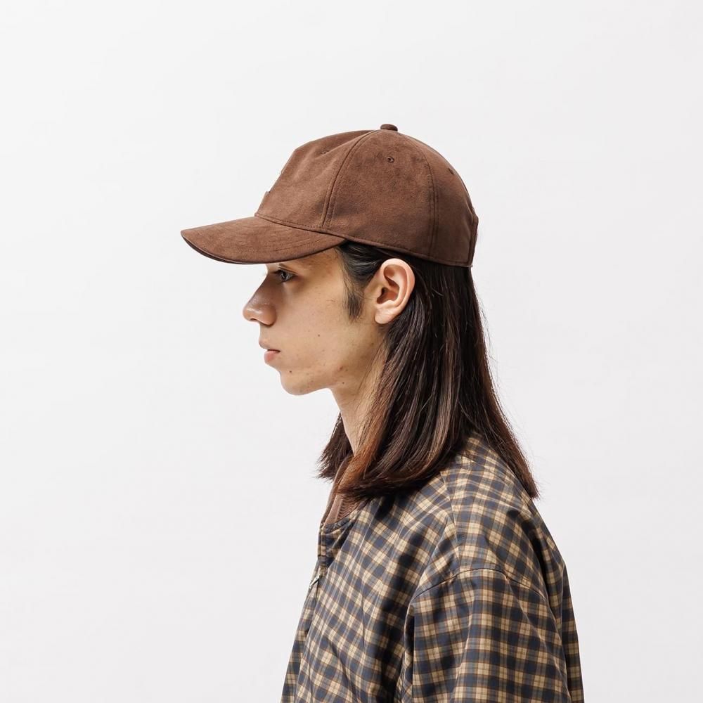 シンセティックスウェード生地を使用したミッドクラウンタイプの6パネルボールキャップ。