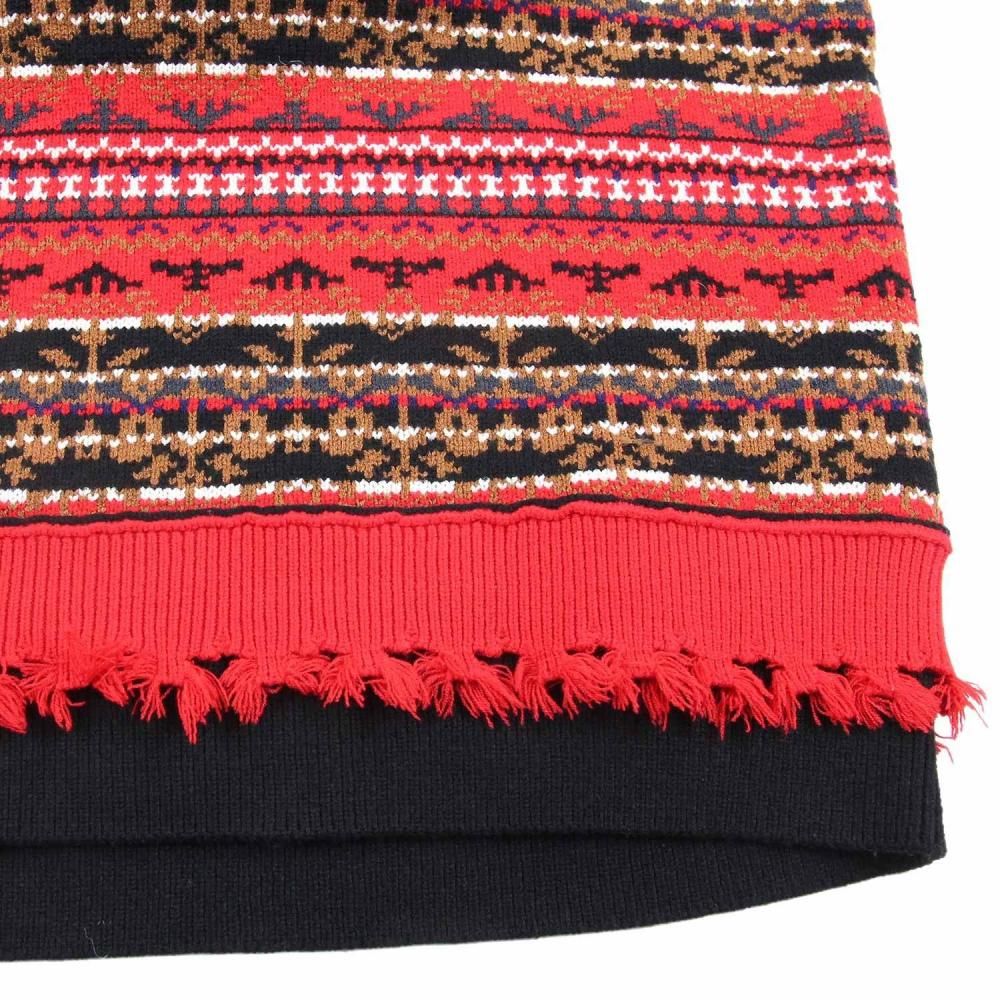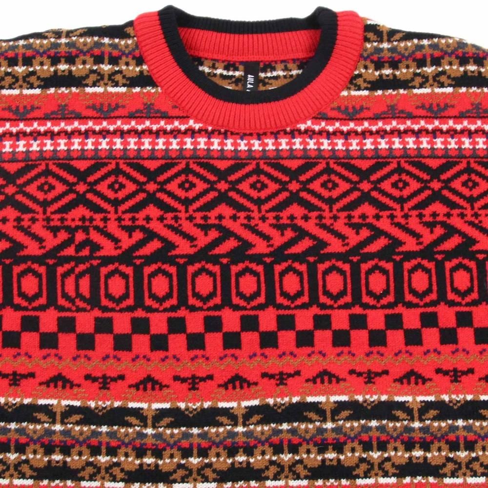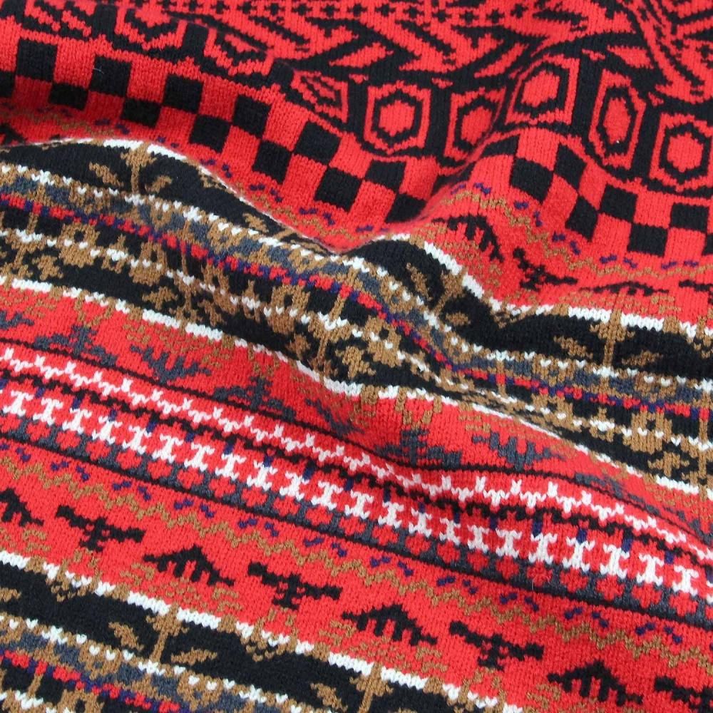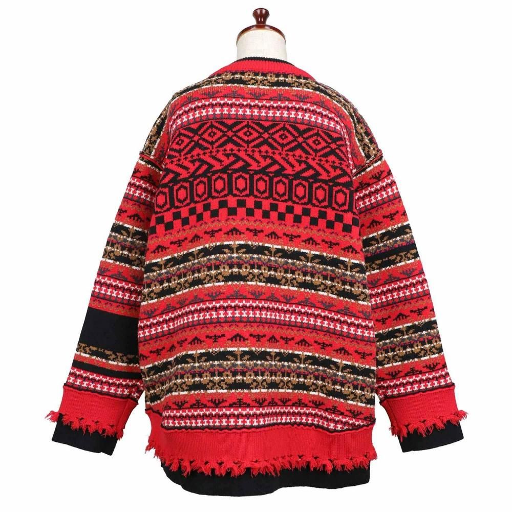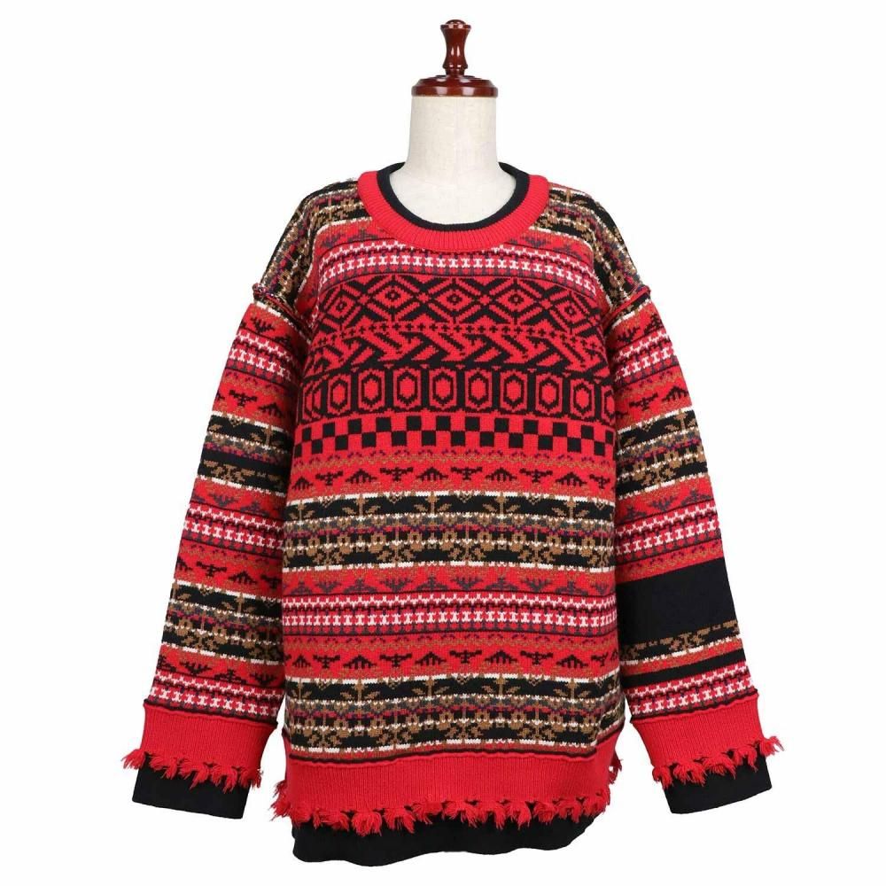 7配色の糸を使用した幾何学柄のジャガードプルオーバーで、