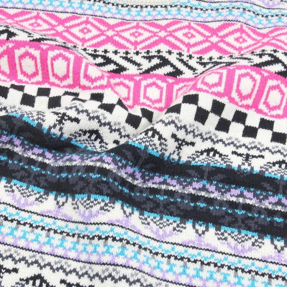 繊細な柄とビビットなカラーリングが他にはない目を惹くニット。