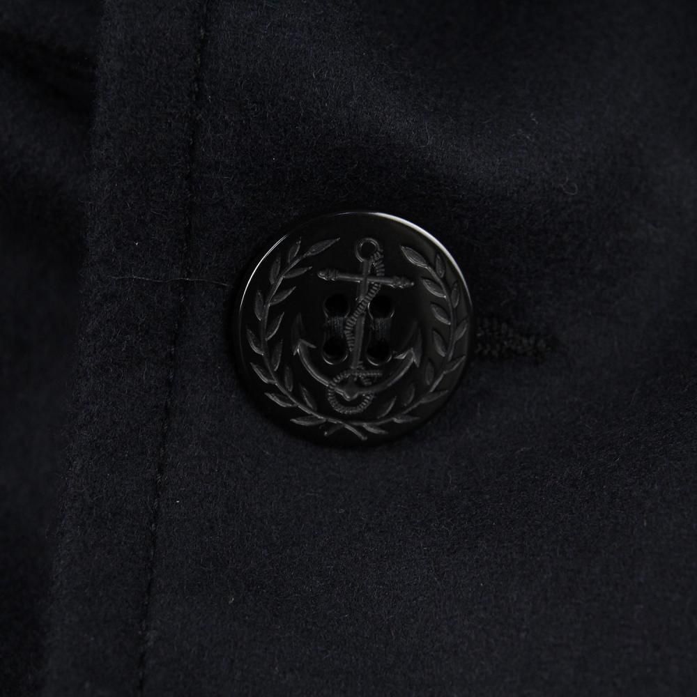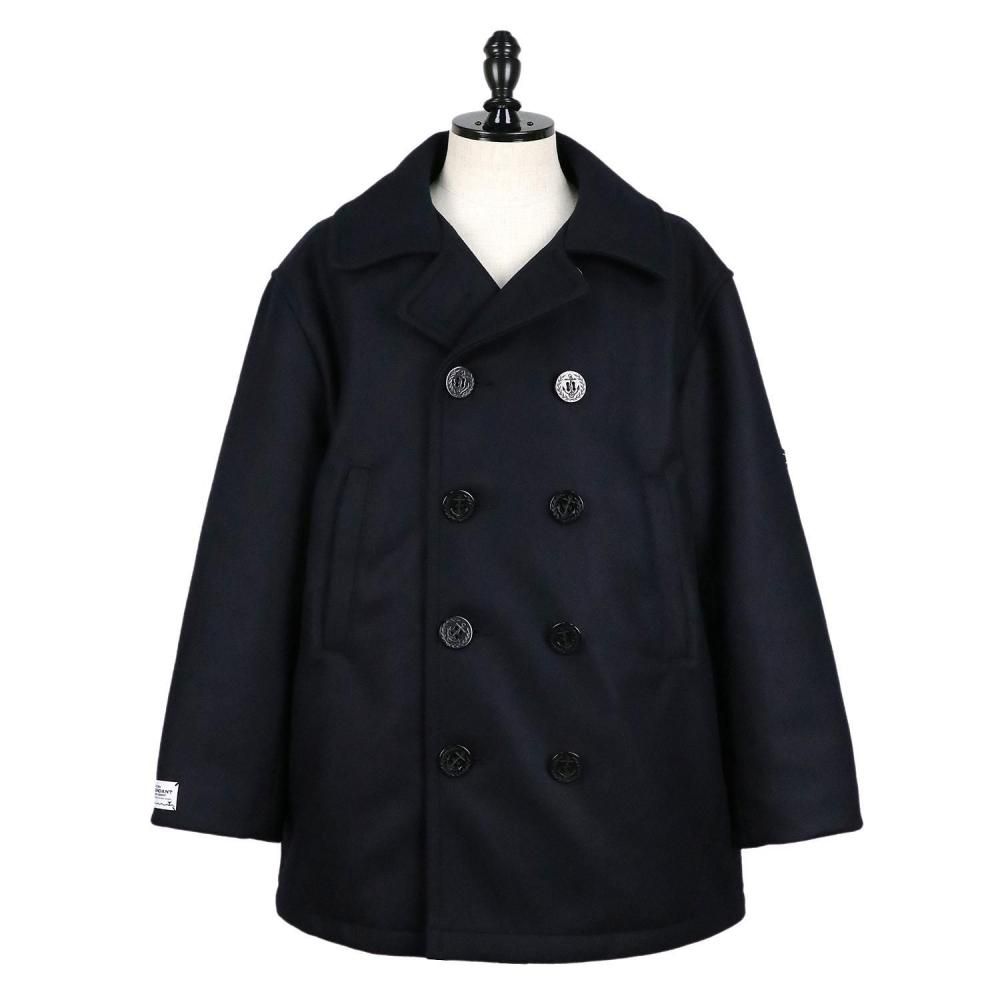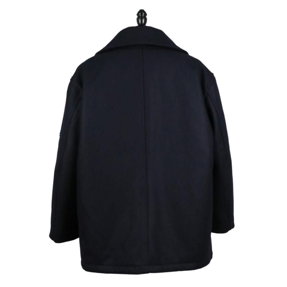 ふっくらした素材感が特徴のウール/ナイロン混の二重織ダブルメルトンを使用したキルティング裏地のピーコート。身幅のゆったりしたシルエット。