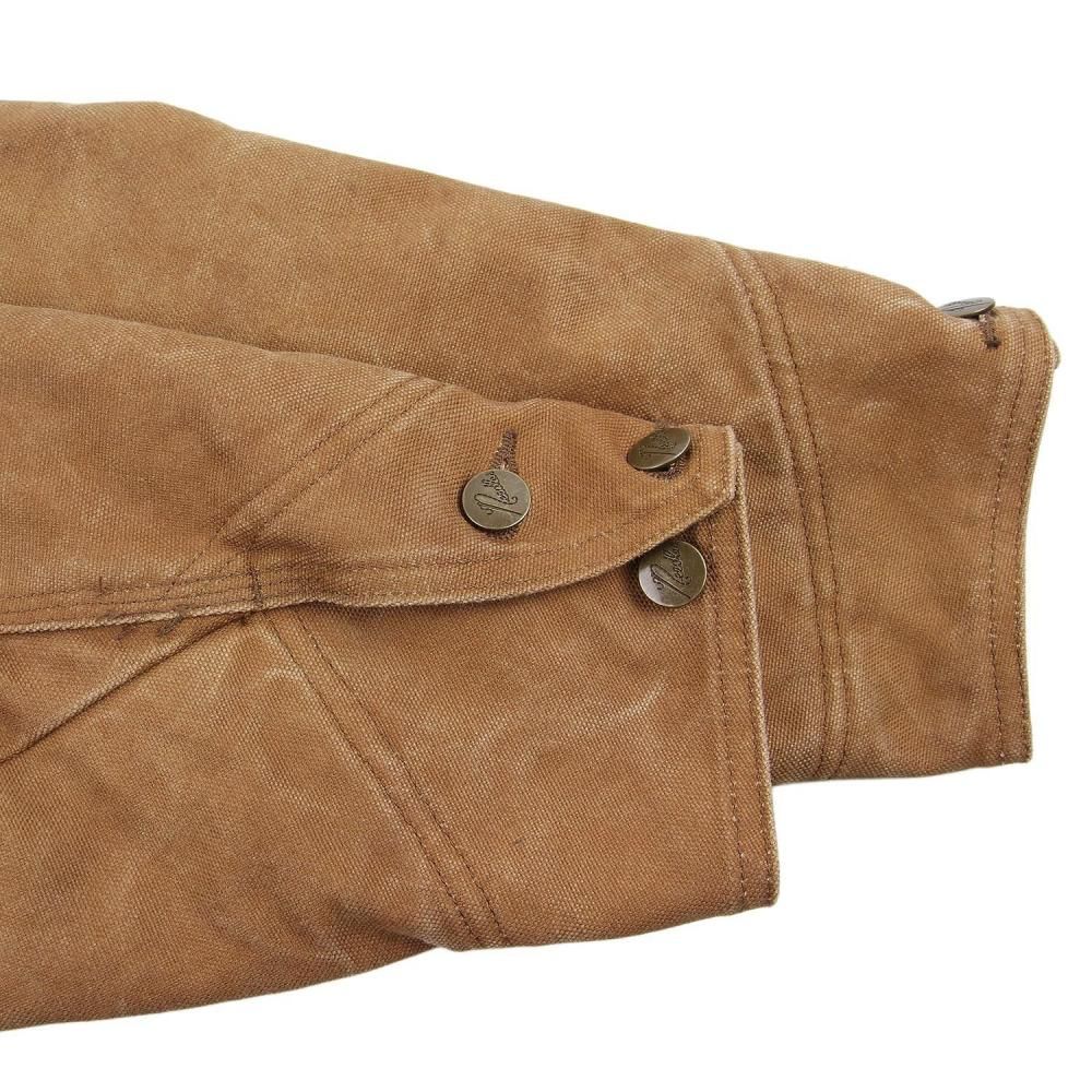 〈NEEDLES〉では定番のオーセンティックなスタイルのカバーオールジャケットが、ヴィンテージな雰囲気を感じられるダックキャンバスで登場。古来より使用されてきた自然由来の柿渋塗料を使用し、重厚感を感じるファブリックに染め上げています。