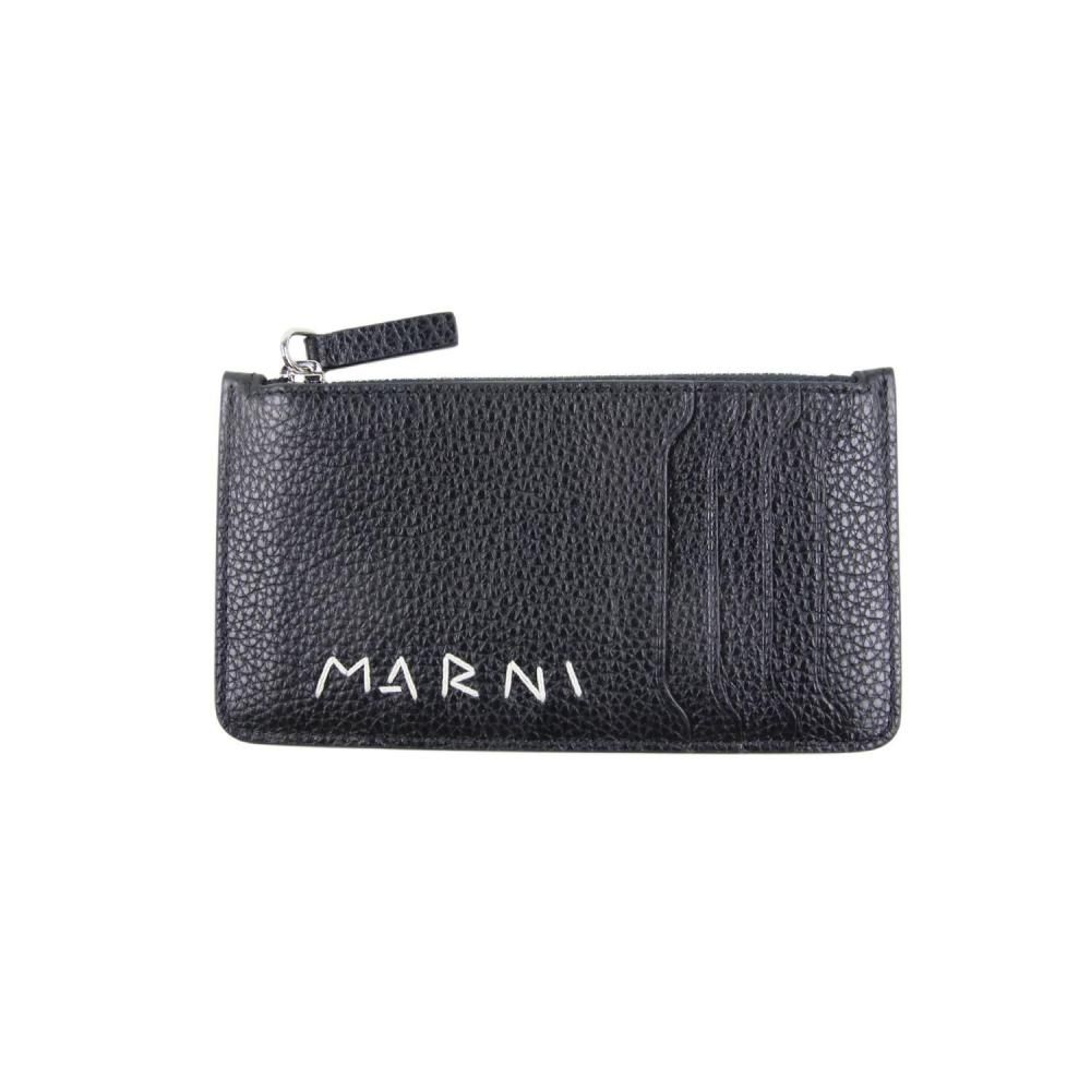 ミルドカーフレザー製カードケース。 カードスロット4つ。 中央にファスナー付きコンパートメント。 フロントにハンドステッチのマルニメンディングロゴ。 Made in Italy