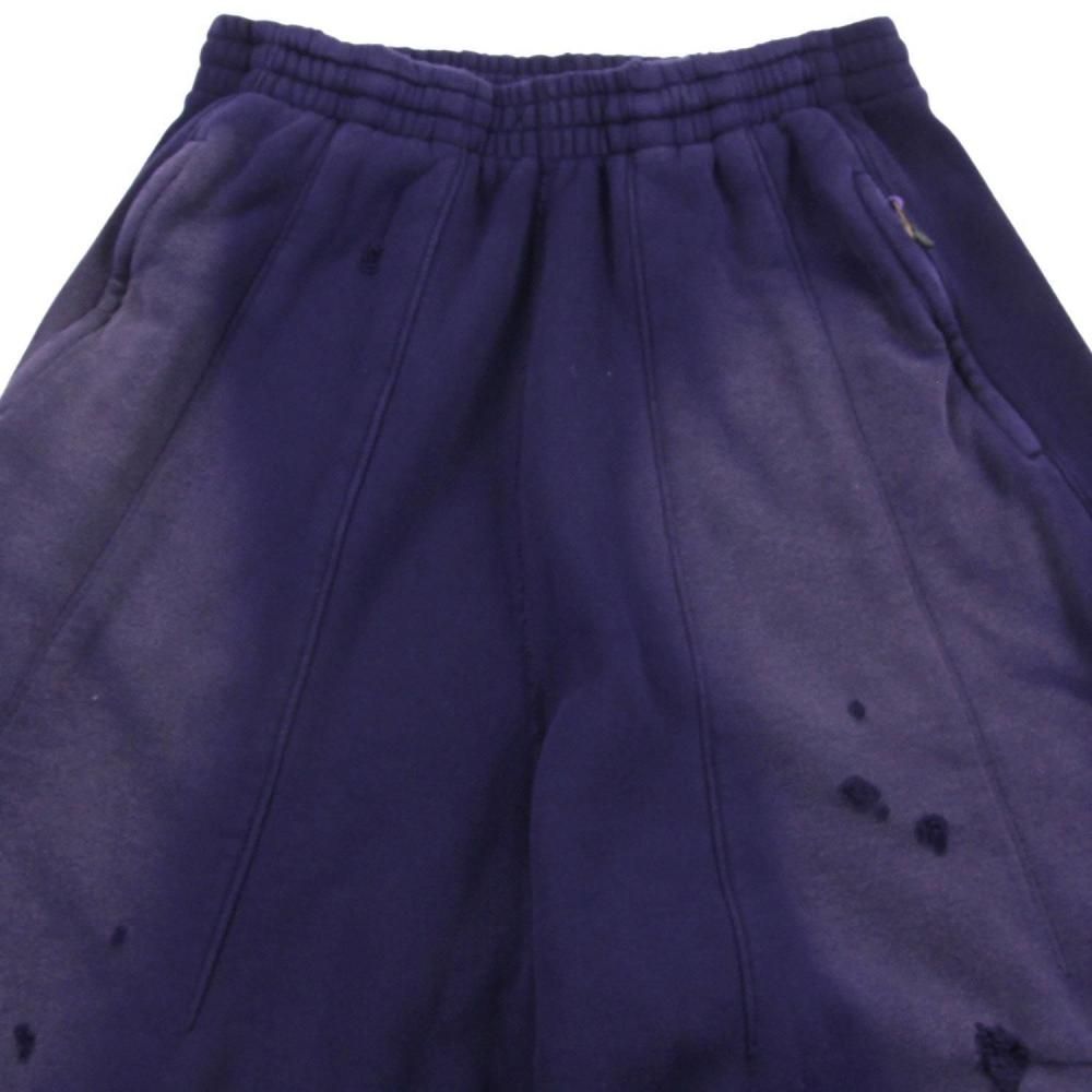 ヴィンテージスウェットのようなリアルなダメージや色褪せの加工が施されたスウェットパンツ。