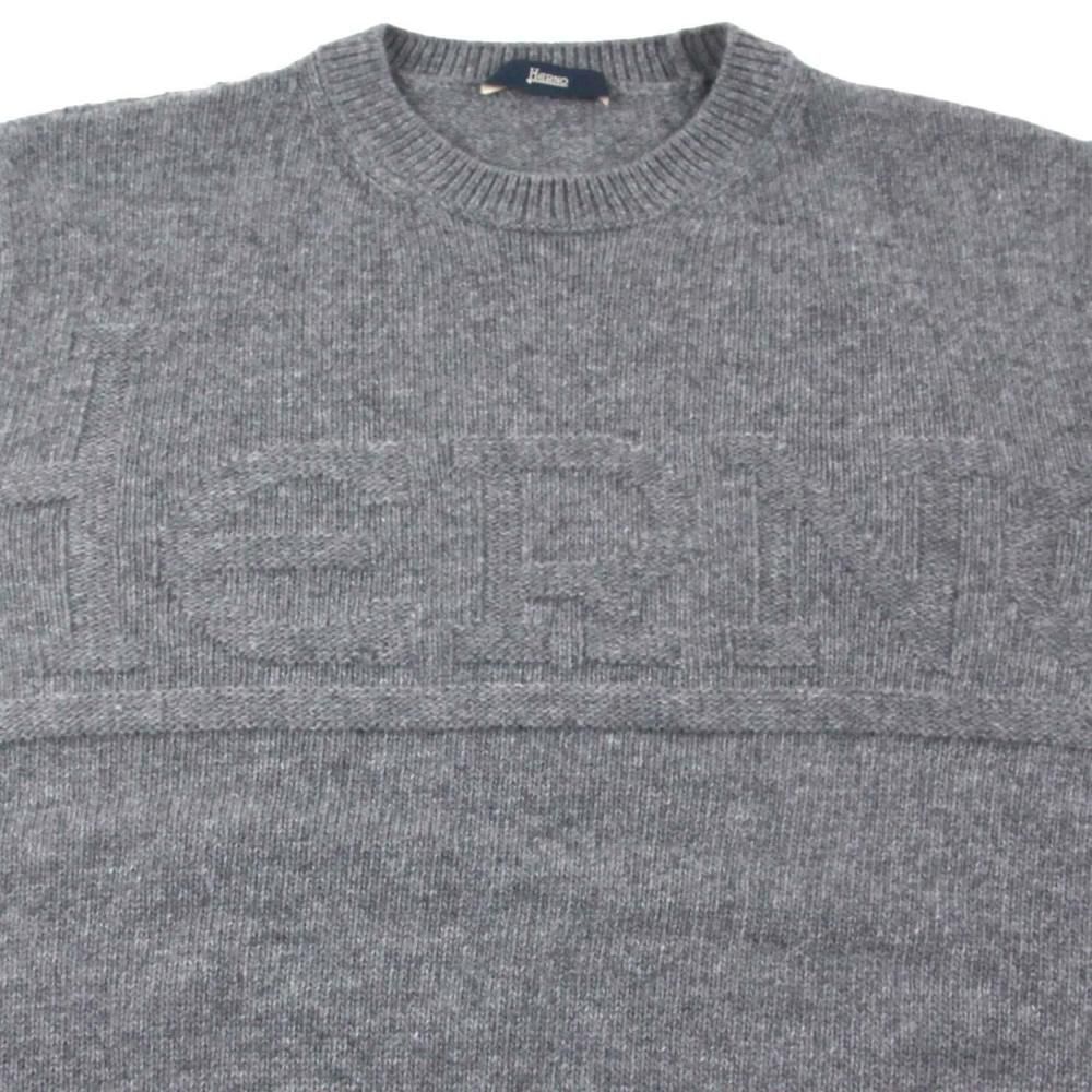 HERNOロゴをニットの編地によって描いた、遊び心のあるデザイン。