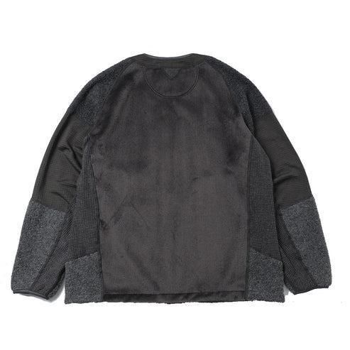 生地のかけ合わせが印象的なクルーネックラグランブルゾン。