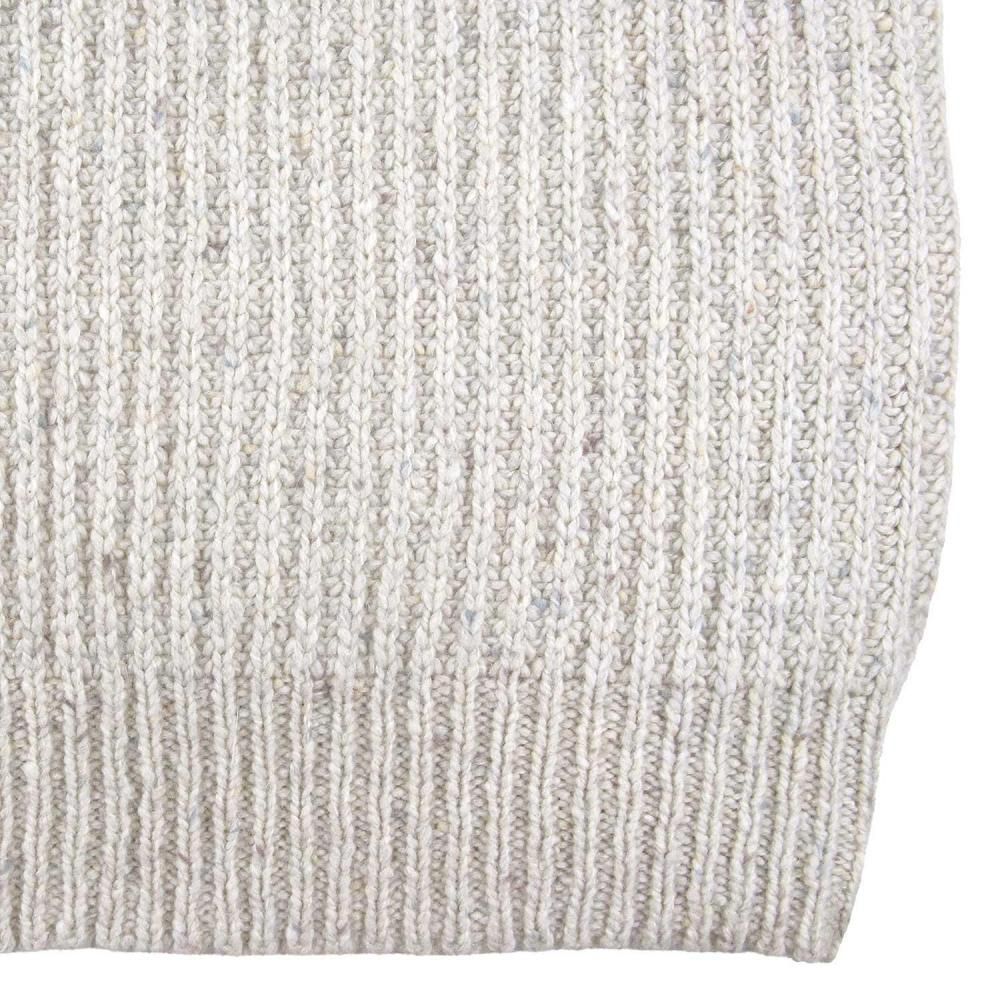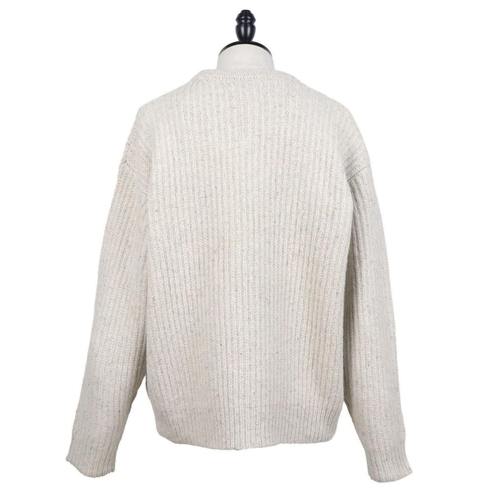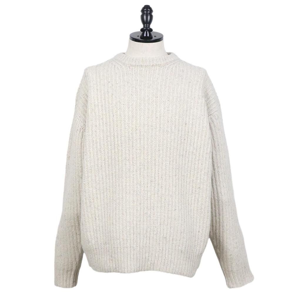度目が詰まったローゲージの片畦で編み立てたボリュームのあるセーターです。