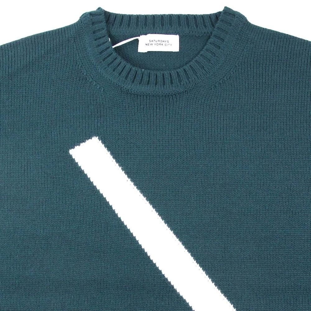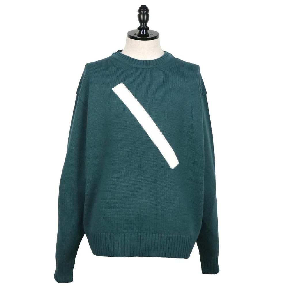 SATURDAYS NYCのスラッシュロゴをフロントにインターシャで表現したミドルゲージのクルーネックセーターです。
