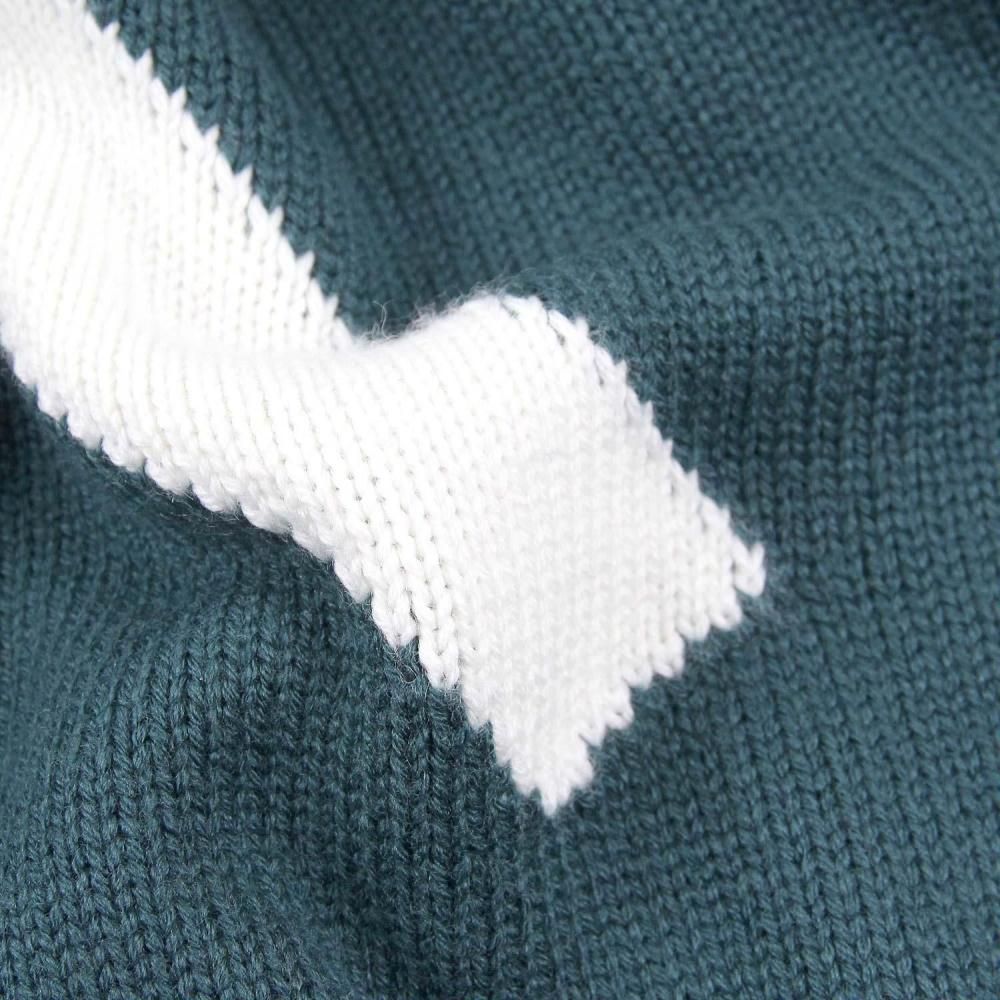 衿と袖のリブがクラシックな編地で、やや緩みを付けたサイジングがリラックスした印象になっています。