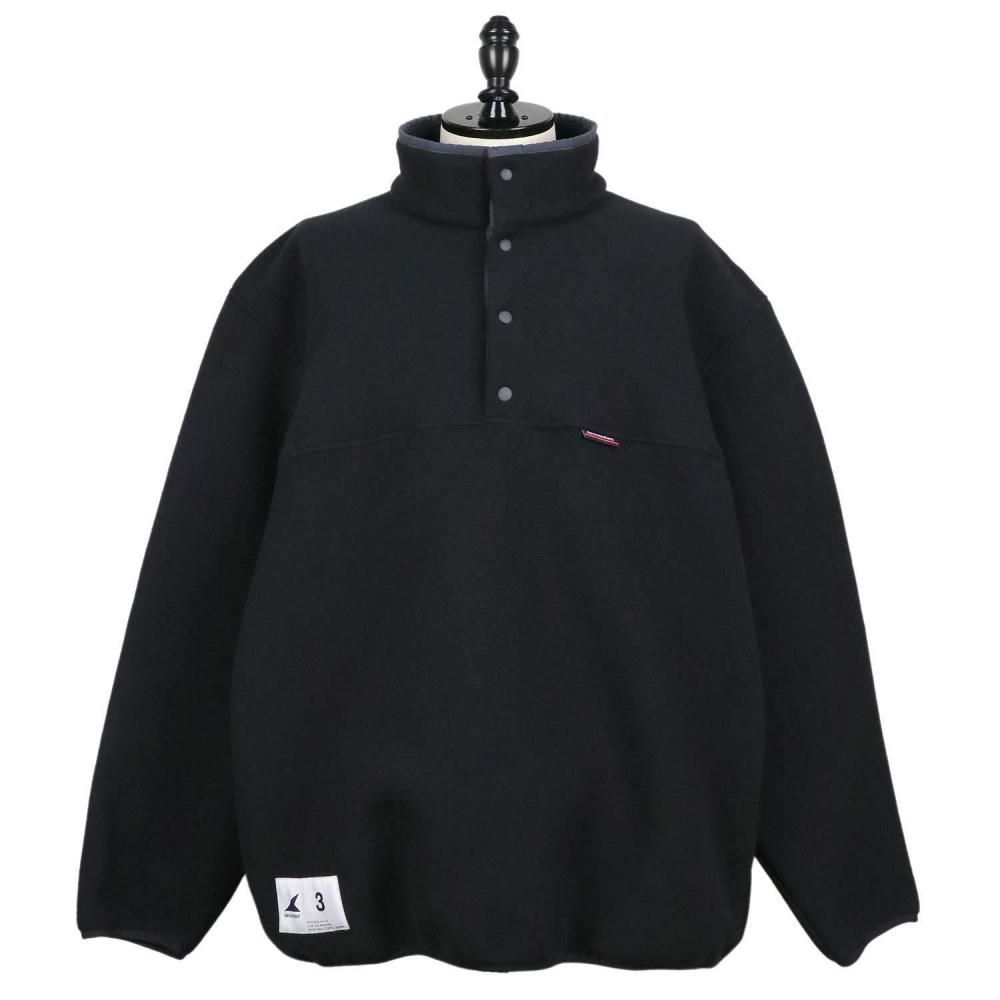 厚手のヘビーウェイトフリースを使用したドットボタン留めハーフプラケット仕様のフリースプルオーバーシャツ。ゆったりした身幅のシルエット。袖口と裾回りをパイピング処理。立ち襟の背面にHORIZONロゴの織りネーム。襟ぐりの継ぎ目にはオリジナルテープのパイピング。右前裾にサイズを表示したCETUSの織りネーム付き。