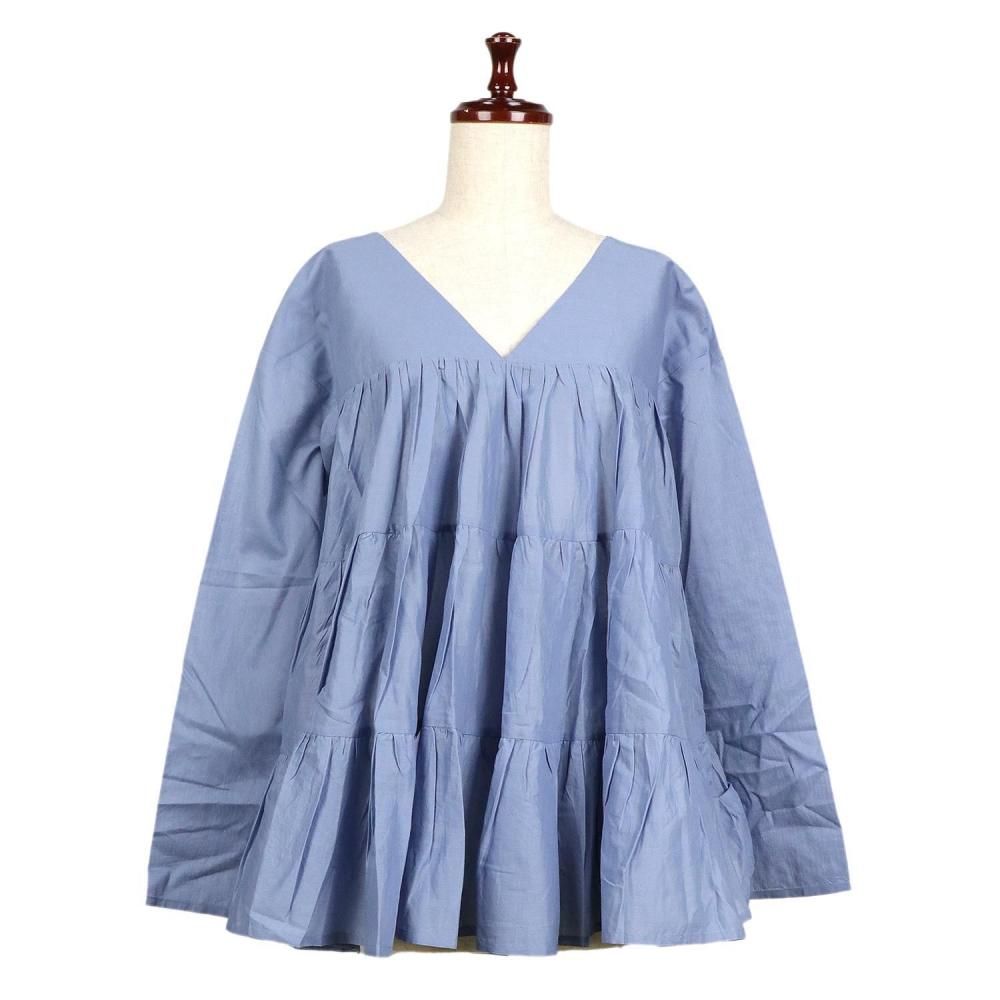 SIDONIA BLOUSE(シドニア)は、Merletteのシグネチャーデザインであるティアードを存分にあしらった日本限定デザインのブラウス。ふんわりとしたティアードのボリューム感とすっきりとした袖のコントラストがエレガントな印象。前後のVネックがデコルテラインを美しく、顔回りをシャープにみせます。一点投入でコーディネートをぐっと華やかに彩ります。