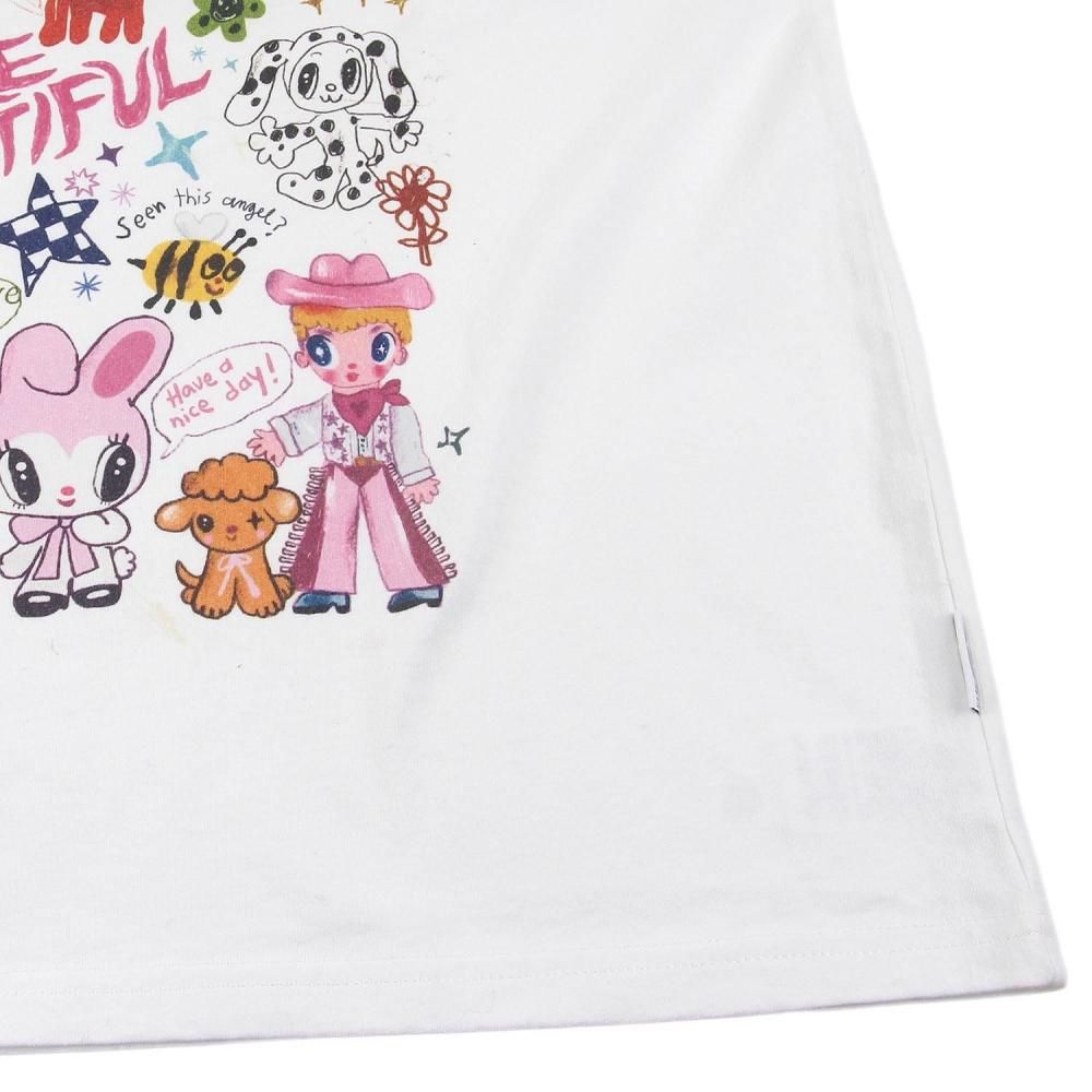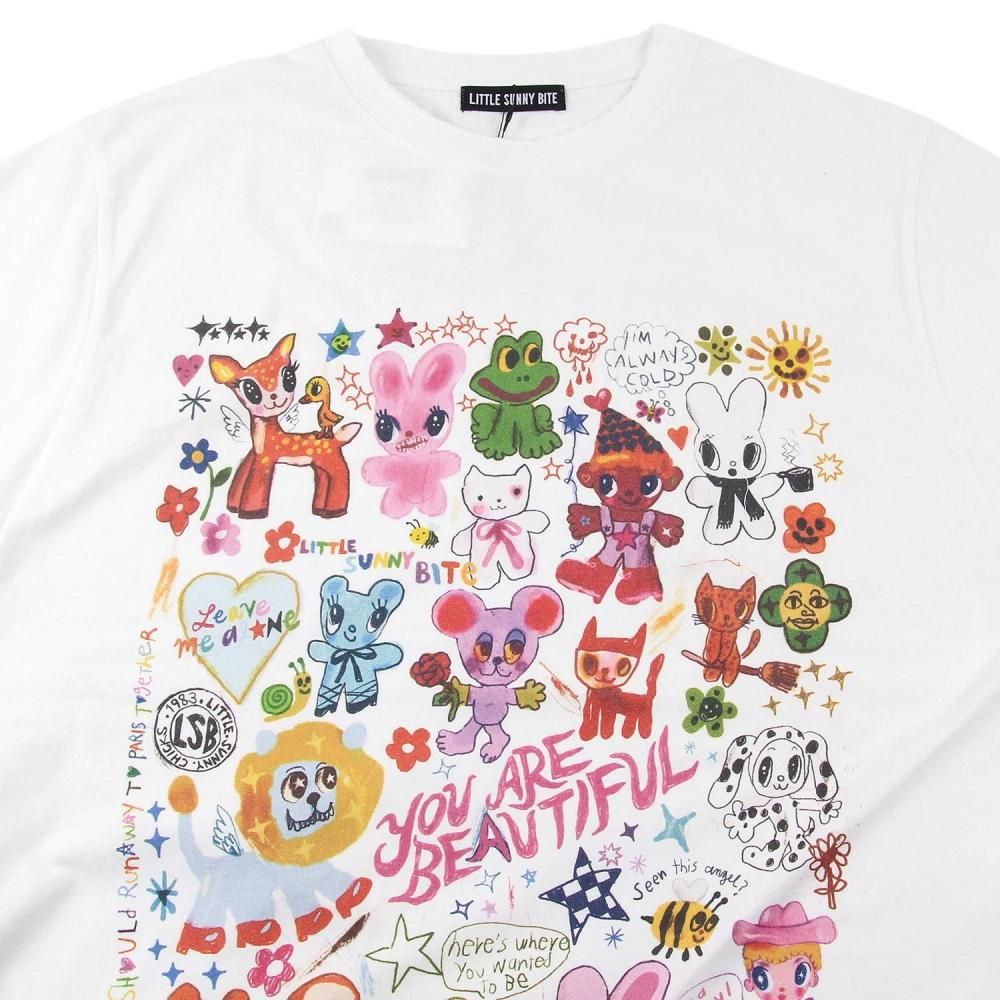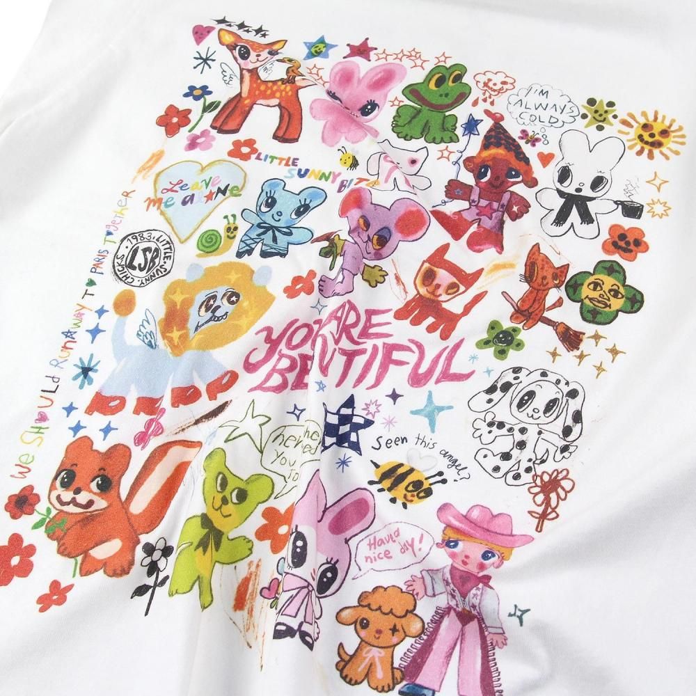 ポップで少しシュールなキャラクターたちが、フロントと両袖にプリントされています。