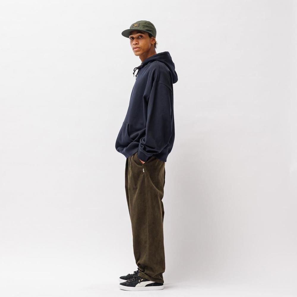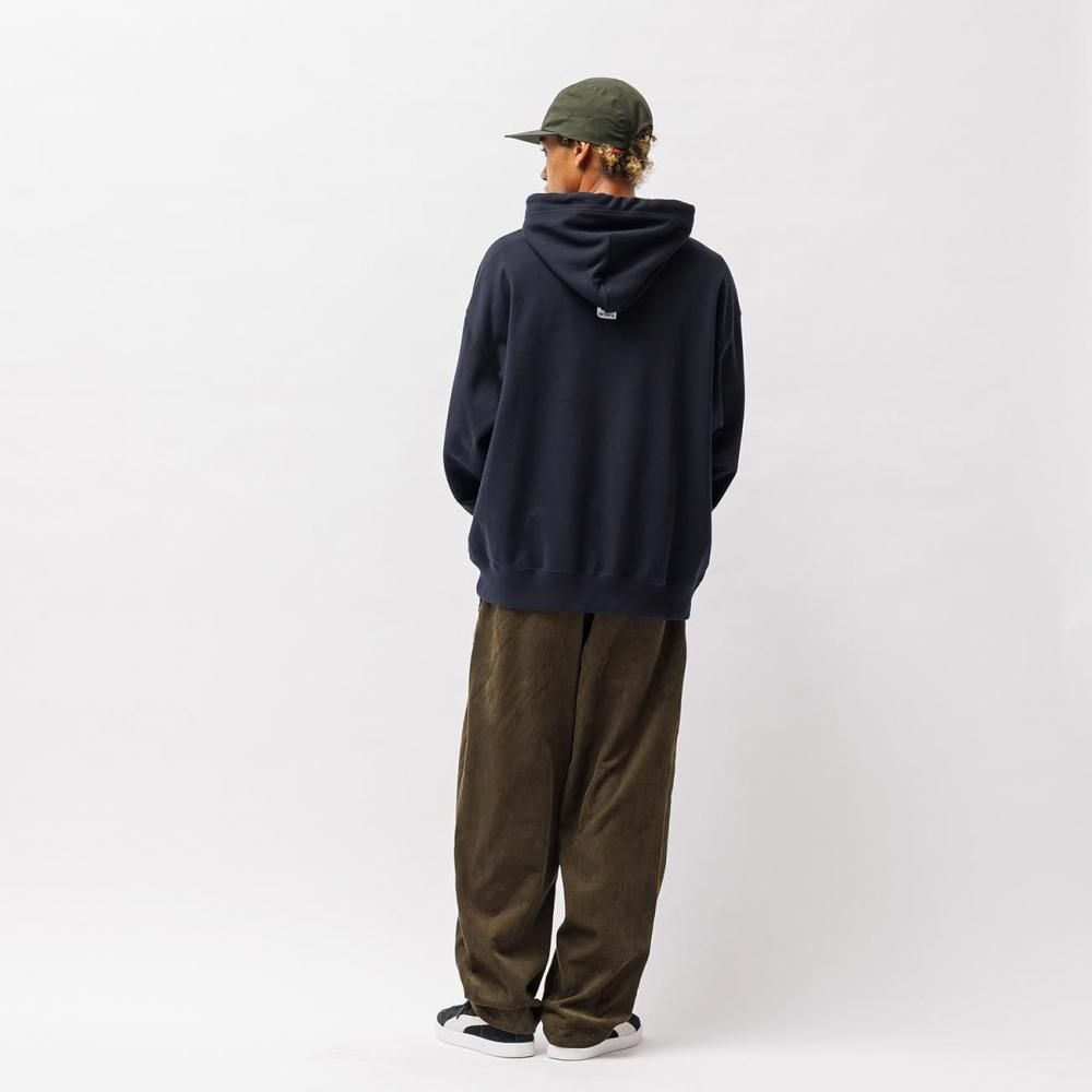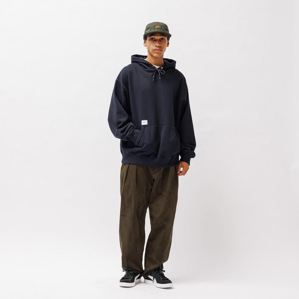 裏毛起毛生地を使用したプルオーバーフーディー。