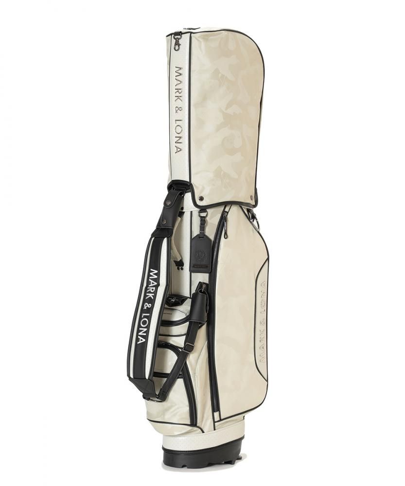 ブランドのシグニチャーであるスカルカモフラージュパターンが際立つ、軽量で機能的なスタンド式キャディバッグ。