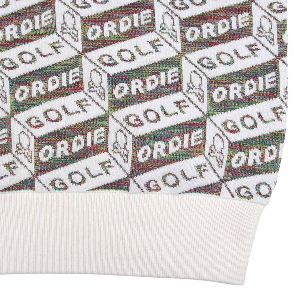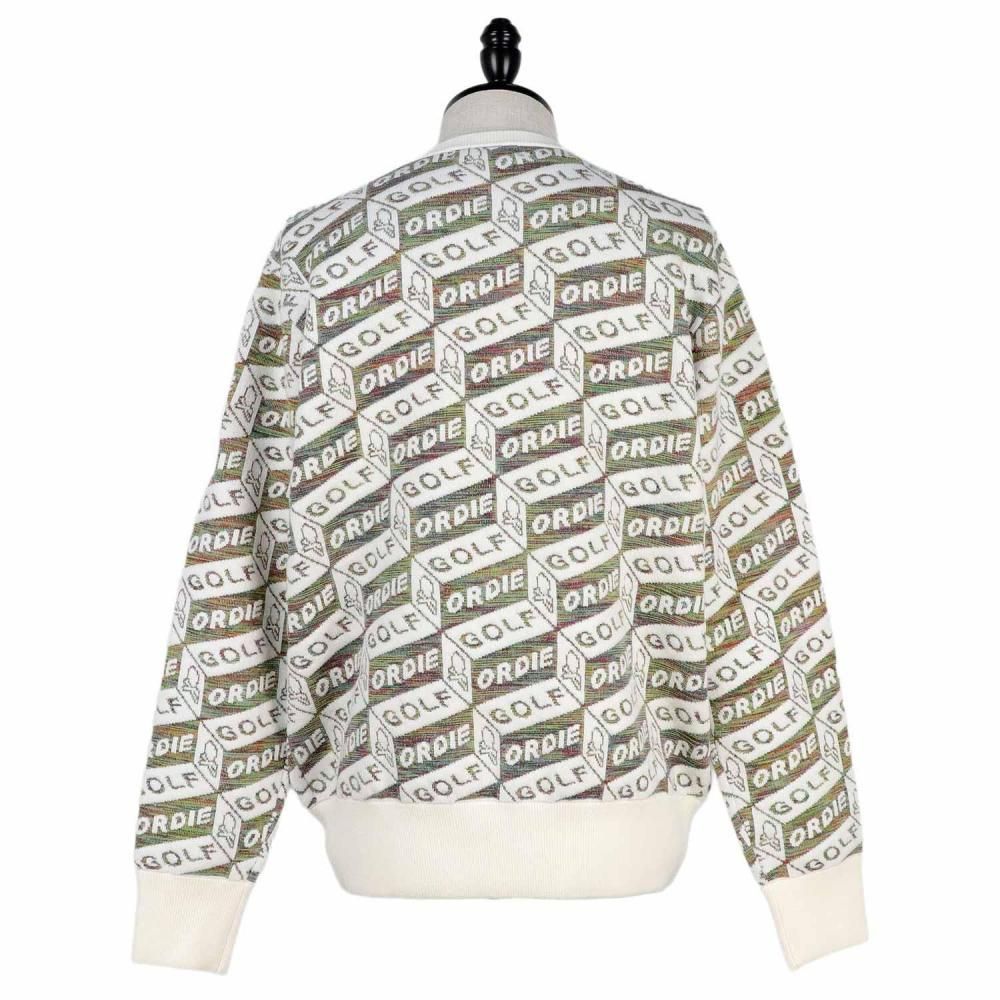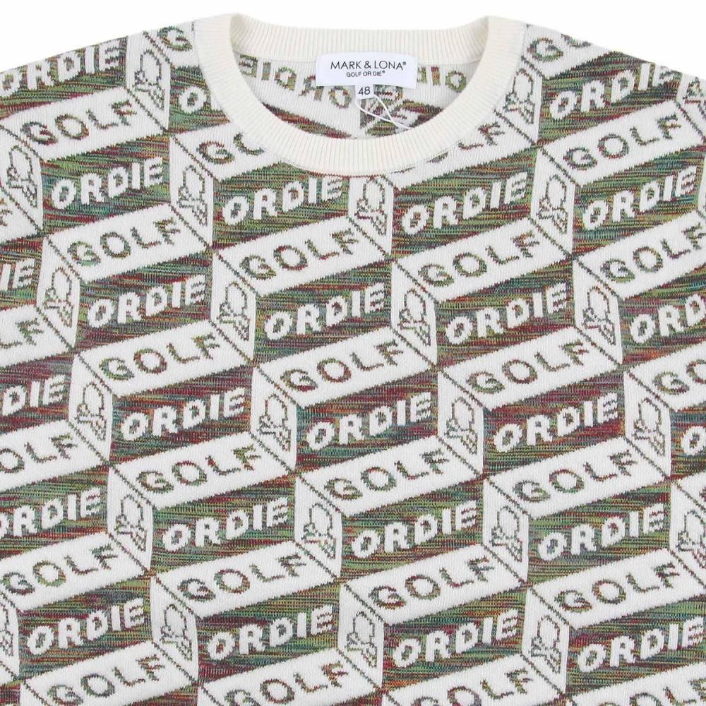 ・レターグラフィックで構成されたブロックパターンの陰影が醸し出すジャカード編み